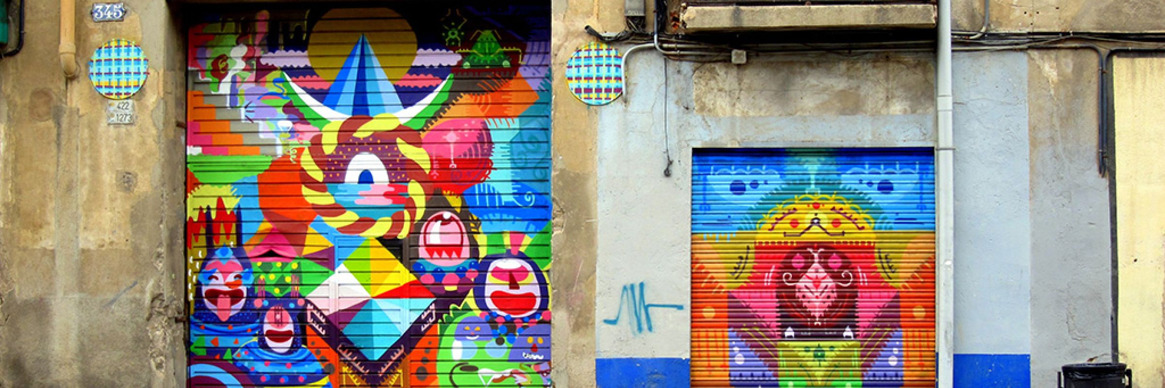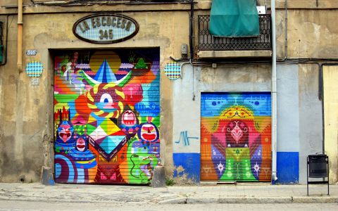 ich versuchte es spontan an einem wochentag zu besuchen. von draussen sieht die facade heruntergekommen aus: die meisten fenster sind zu gemauert und es ist kaum noch putz vorhanden. nur das tor ist bunt und lebendig angemalt und lässt schon erahnen was für kreative schätze sich hinter diesen mauern verbergen. ich hatte glück, das tor war offen und es hing eine ruhige atmosphäre über dem gelände. alle ateliers waren offen und ein paar künstler arbeiteten ungestört vor sich hin. man konnte ruhig herumlaufen und alle ecken fotografieren. zu dem zeitpunkt gab es noch viele werke vom la escocesa mural festival.