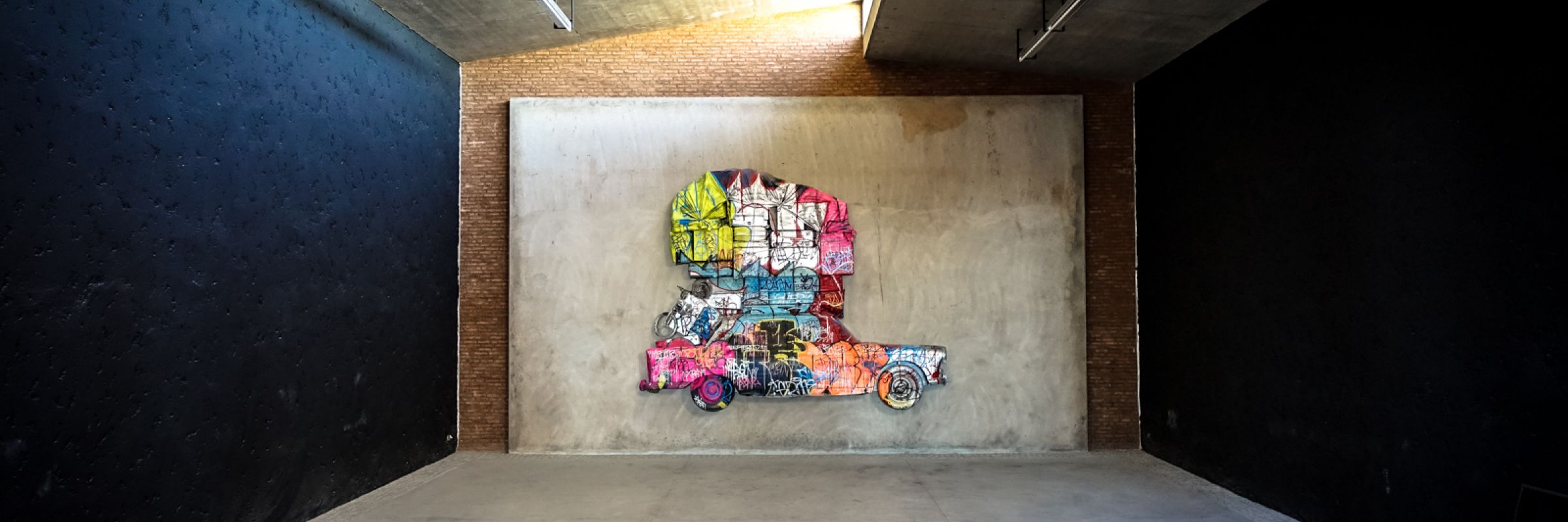 In his thoughts about his participation to the Marrakesh Art Biennale, Tilt has continued his questioning about the consequences of the practices and the experimentation in graffiti art, by fetishizing an object, the Peugeot 404 car, out of time, appreciated for its properties regardless of its practical, socials and cultural interests. Tilt sanctifies the object by vandalizing it; he breaks down the unstable and fluctuating barriers of the work of art. From this, the artist reinterprets and mounts the images of those big summer migration flows on the Maghreb roads and of the meeting between two cultures through the round trip of these migrants, in his own language, that of primitive graffiti.