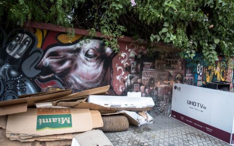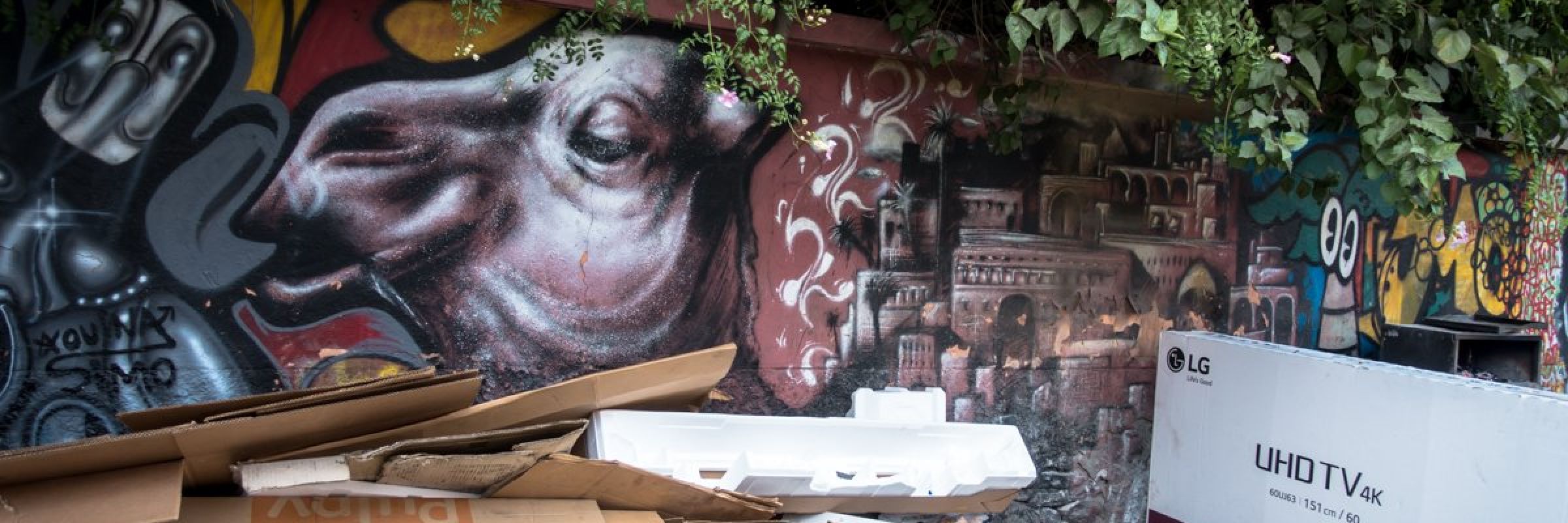 der zustand der strasse und graffitis haben nachgelassen. kommerzielle stände stehen vor die arbeiten. das graffiti-icoon von morran ben lahcen brockelt ab, dazu kommen noch ein paar schlechte italienische graffitis…