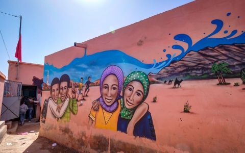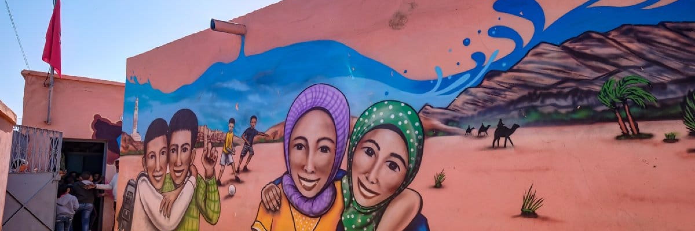 Graffiti an der Oulad Bouzid Schule, Marrakesch