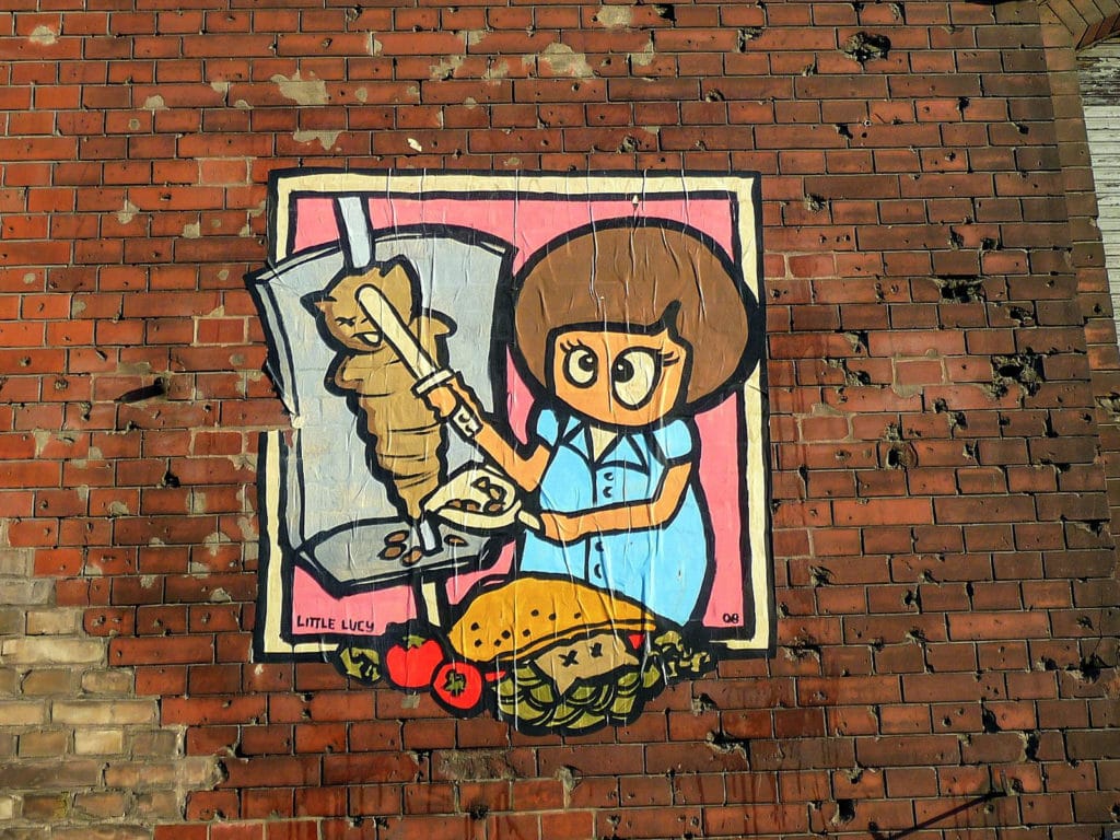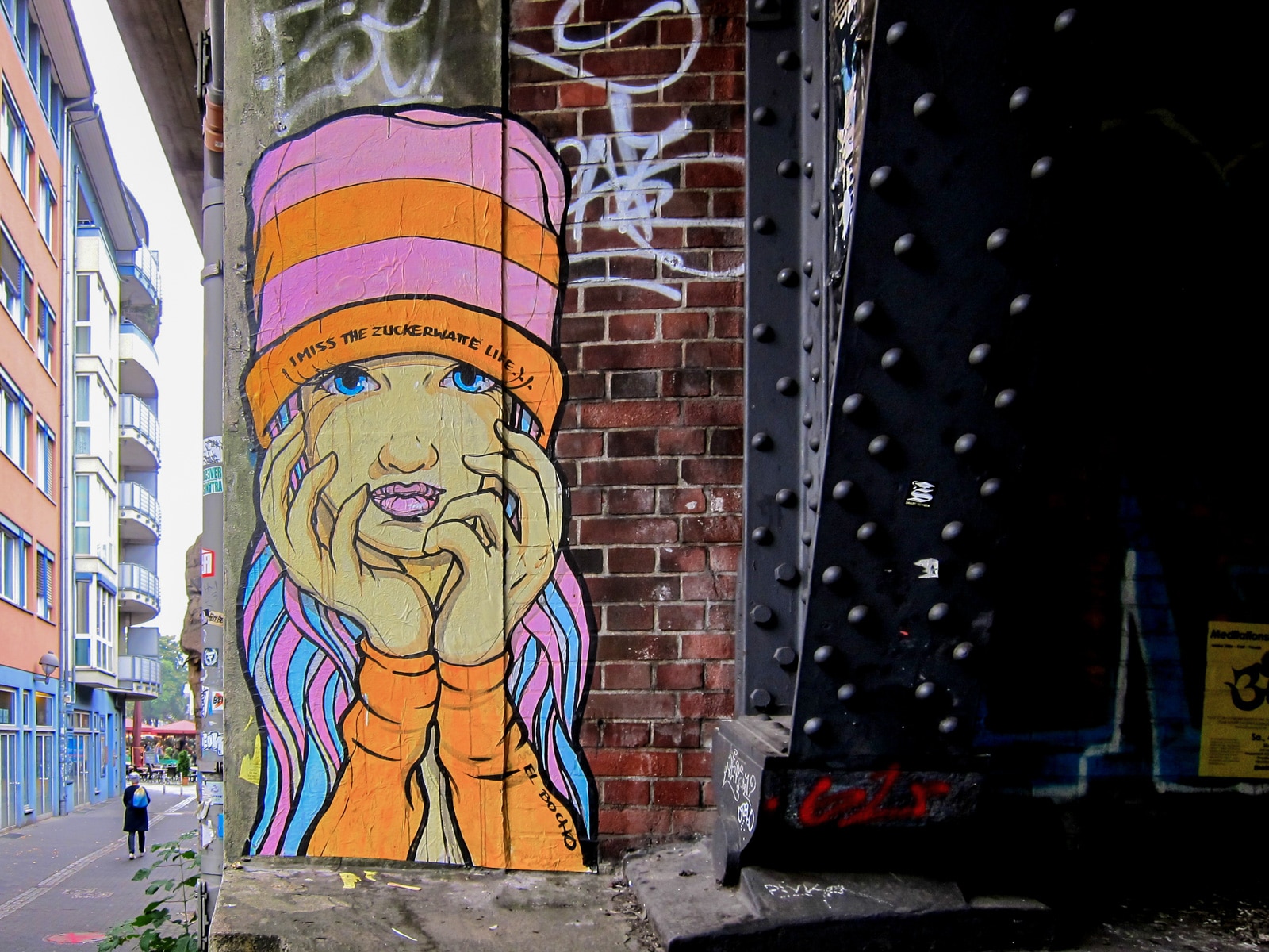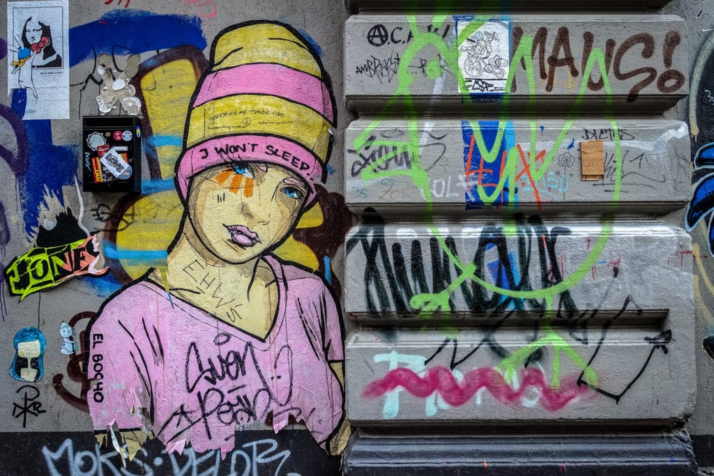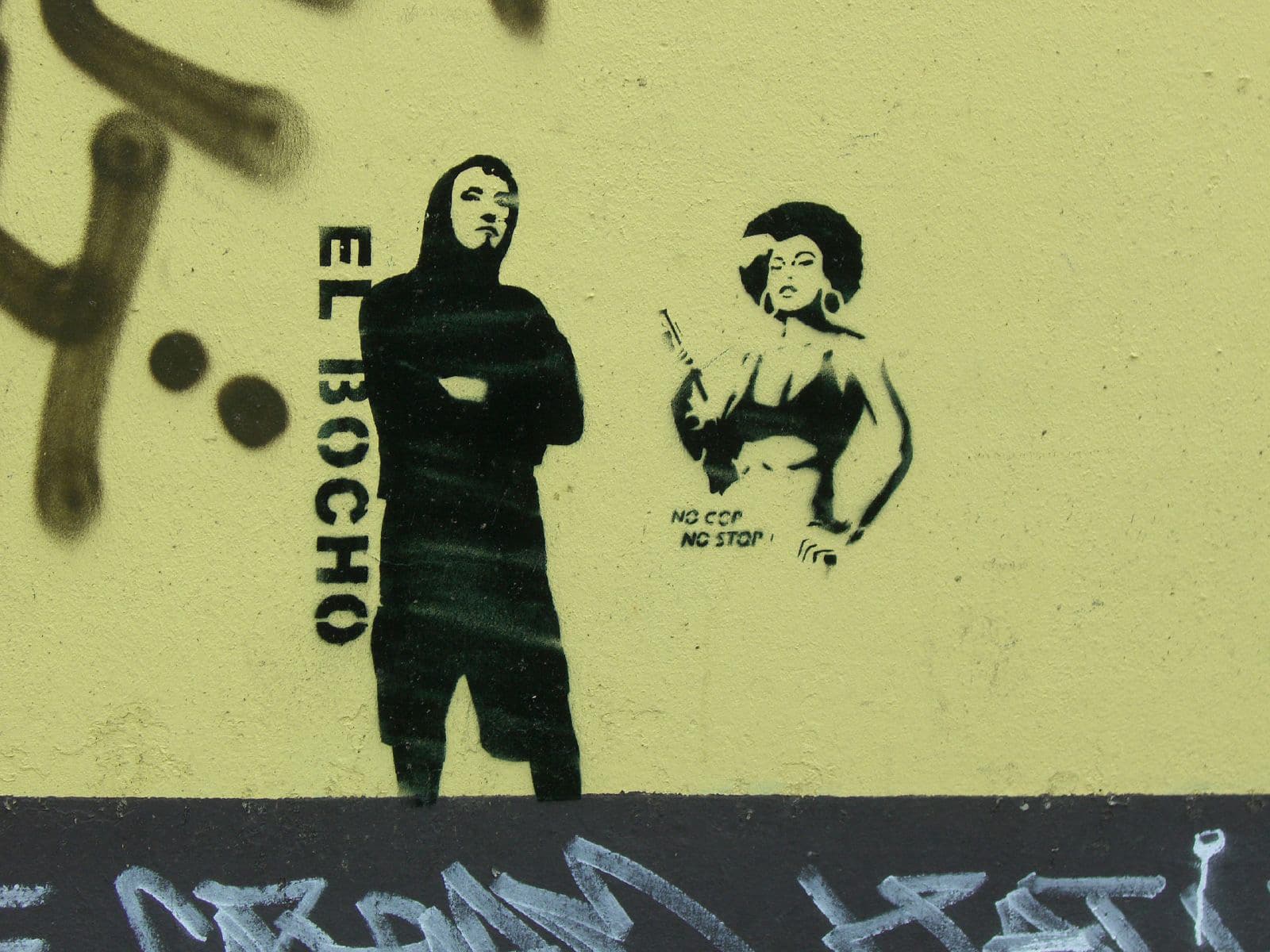 Neben seiner Vorliebe für teils schwarzen Humor ist El Bocho aber auch sehr romantisch. Seine Figuren „Citizens“ sind große stilisierte Portraits von Mädchengesichtern, seine bekanntesten und unverkennbaren Arbeiten, die er schon über 10 Jahre und bis heute im Stadtraum klebt.