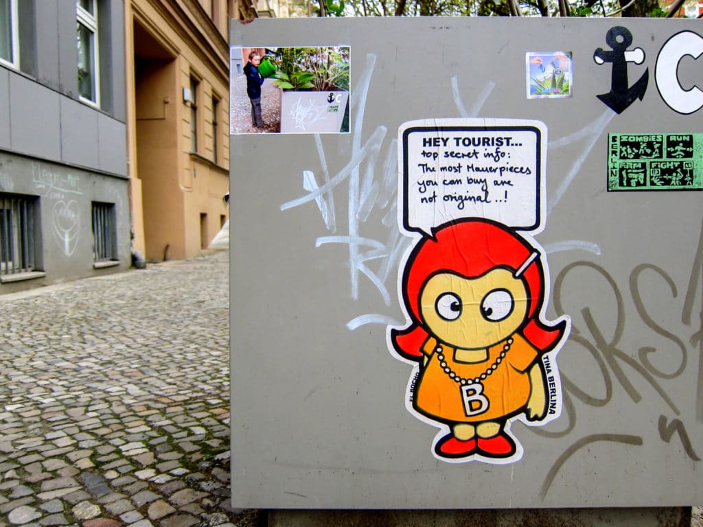 Eine weitere Figur ist Tina Berlina mit dicker Halskette mit großem B für Berlin stehend um den Hals. Als Paste up oder Sticker mit Sprechblase wendet sie sich seit ca. 2013 an die Touristen mit dem Vordruck in der Sprechblase „Hey Tourist…“. Darunter ist Platz für handgeschriebene humorvolle Sprüche im Zusammenhang mit Berlin und Tips für die Touristen, wie z.B. „Don’t believe your tour guide“ oder „check Urban Art Week“.