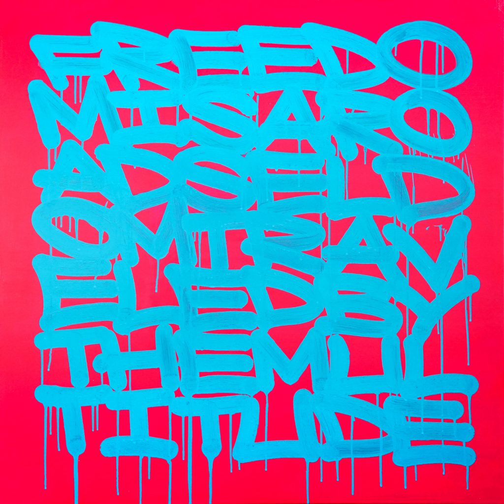 Doing It Again, 207 x 207cm, mixed media on canvas, 2018 – Pic ©STOHEAD