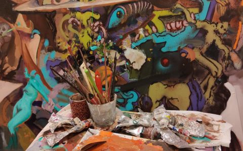 Howtokillagraffiti arbeitet intuitiv und hat sich zur Aufgabe gemacht die Energie seiner großformatigen „Graffmalerei“ im Außenraum im Atelier auf Leinwand einzufangen. Mit einer Mischtechnik aus Ölfarbe und Sprühlack auf Leinen schafft der Künstler durch seine einzigartige Bildsprache aus der Farbmaterie faszinierende Figurenknäuelsz-Kompositionen zu kreieren, die den Betrachter in eine poetische Welt des Surrealen und des Unterbewusstseins eintauchen lassen und zudem durch ihre kraftvolle expressionistische Ader anregen und gewiss nicht unberührt lassen.