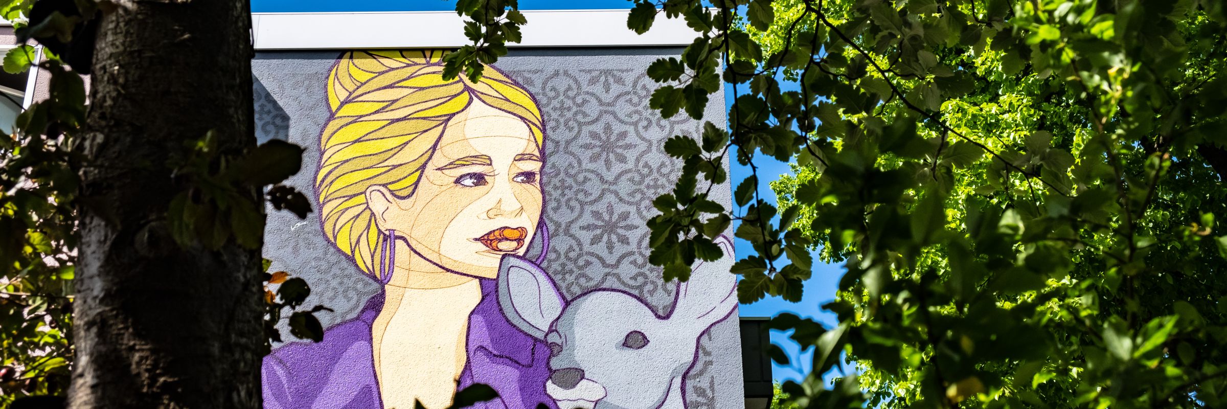 Toll, danke Bart, dass es dir gelungen ist mit El Bocho einen Künstler für unsere Wand zu gewinnen, der es mit seinem Mural geschafft hat, der formal und funktional strengen Architektur unseres Hauses ein freundliches Gesicht zu verleihen, das allen die dafür offen sind, ein friedliches und besinnliches Lächeln schenkt!