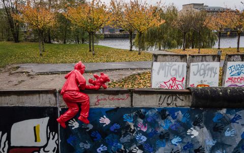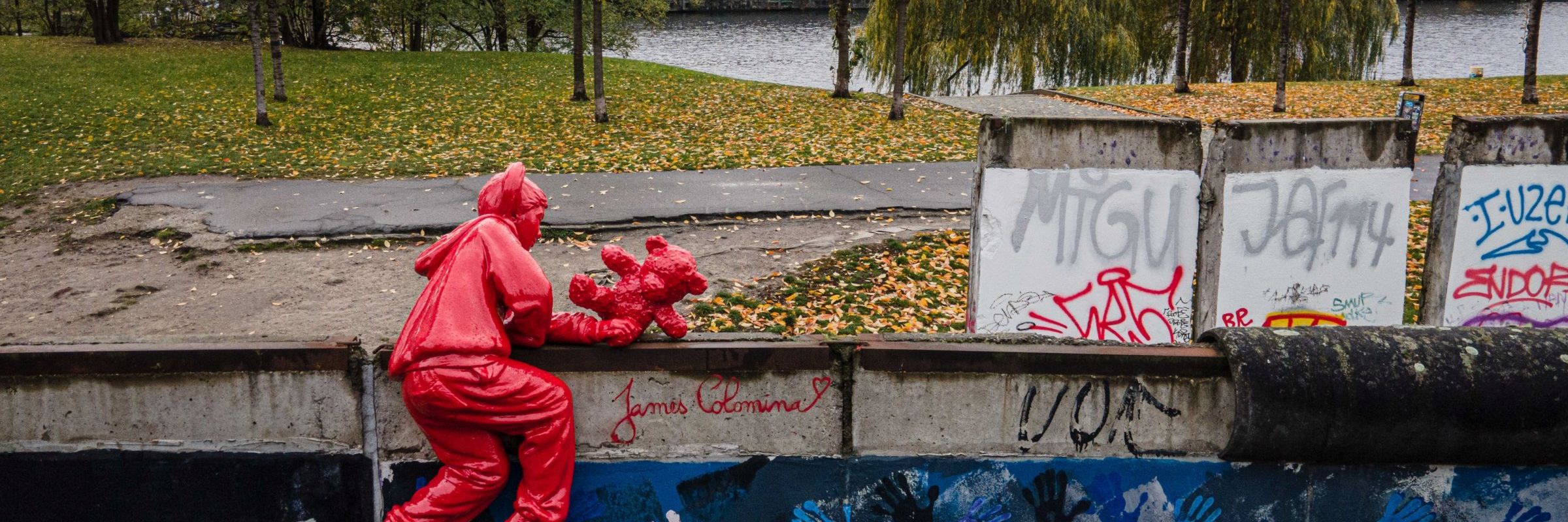 Rote Skulpturen in Berlin zum Mauerfall aufgetaucht