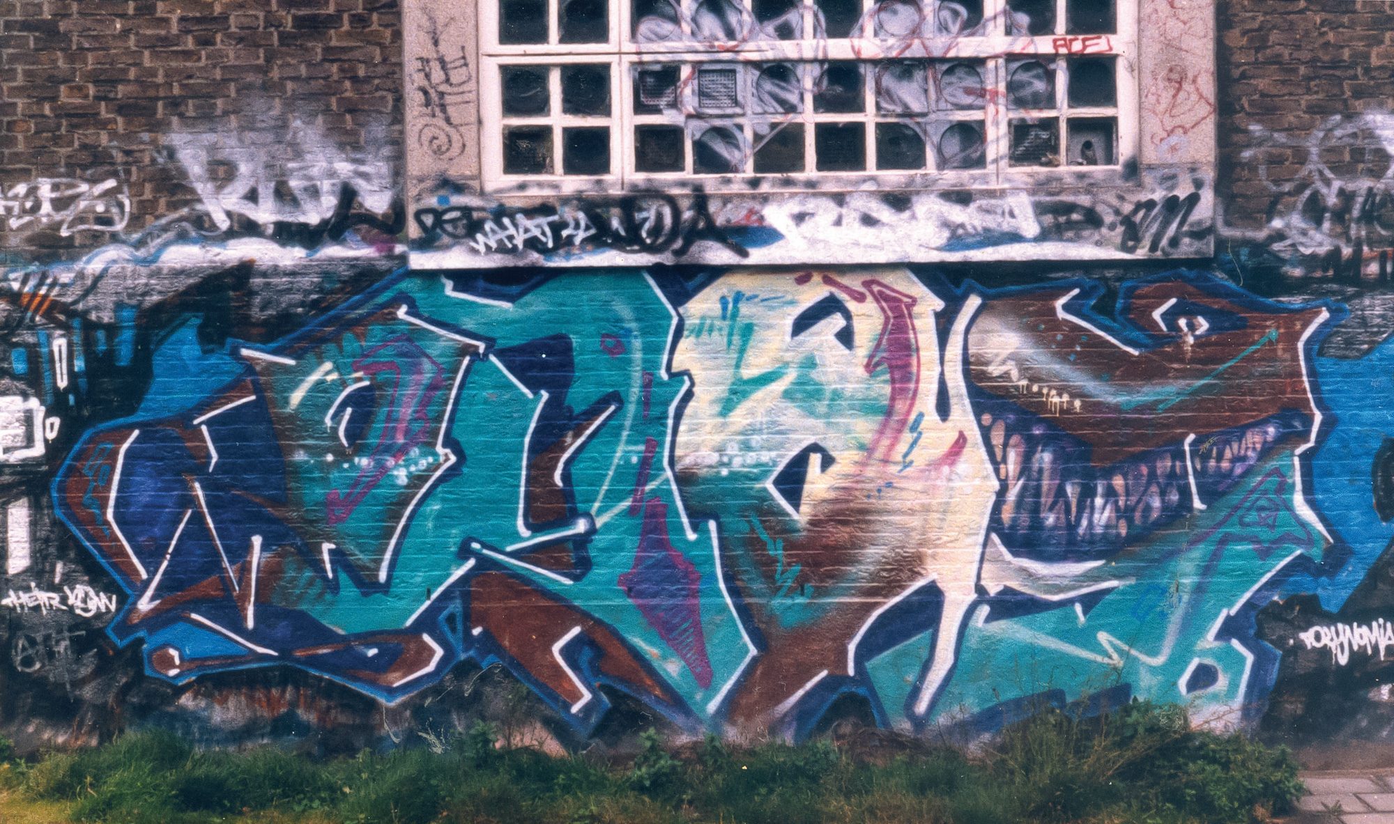 Mitte der 1980er Jahre entstand in Eindhoven die Graffiti-Szene und EROSIE entdeckte als Kind Tags und Throw Ups auf den Straßen und war fasziniert. Schon als Kind zeichnete er selber sehr viel, eine Hauptbeschäftigung neben dem Radfahren und Skateboarden. Zu Hause wuchs er mit einem beeinträchtigendem Familienleben auf, das mit viel Stress verbunden war und so wurde das Zeichnen zu seinem persönlichen Schutzraum, in dem er alles vergessen und sich frei fühlen konnte. Eine Art der Ablenkung, eine Form des Eskapismus, erzählt er heute. Nachdem er Tags und bunte Pieces entdeckt hatte, begann er, selbst Buchstaben zu zeichnen. „Die fett gemalten Formen, Characters und Farben waren überall und ich liebte es“, erinnert er sich. Selber begann er 1992/1993 mit Graffiti Writing, kurz nach der ersten großen Welle des Style Writings und mitten in der Zeit des Hardcore Trainwritings in den Niederlanden und der U-Bahn-Bombings in Amsterdam. Sein erster Name war EROS und malte ihn vor allem auf der Straße. Später wurde er Mitglied der SOL-Crew und änderte seinen Namen in EROSIE Ende der 90er. Diese Zeit war eine lebendige Zeit, musikalisch und visuell, alles fühlte sich wie eine Entdeckung an, laut ihm. Und es gab nur sehr wenige Referenzpunkte, die nachhaltig prägten. Neben MTV als einer großen Informationsquelle gab es ein oder zwei interessante Radiosendungen. Die Leute reisten also in verschiedene Städte, um Graffiti Pieces in echt zu sehen und zu fotografieren, und um in Läden ein bestimmtes Buch oder Magazin über Graffiti zu finden. Es waren Zeiten des Verbindens, Experimentierens, Mixen, in der man sich nicht auf ein bestimmtes Genre oder Thema festlegte, sondern offen für verschiedene Einflüsse war. In Eindhoven gab es damals eine gute Mischung an Menschen, die sich in verschiedenen Szenen bewegten, so EROSIE. Meist Graffiti Writer mit einer neugierigen Einstellung, wie z.B. die Leute von Betamaxxx, Space3 und der SOL-Crew, mit denen er in den folgenden Jahren auf der Straße aktiv war. Er erinnert sich, wie er mit dem Fahrrad durch die Stadt und die Umgebung fuhr und die Straßen und das, was dort passierte, ihn begeisterte.