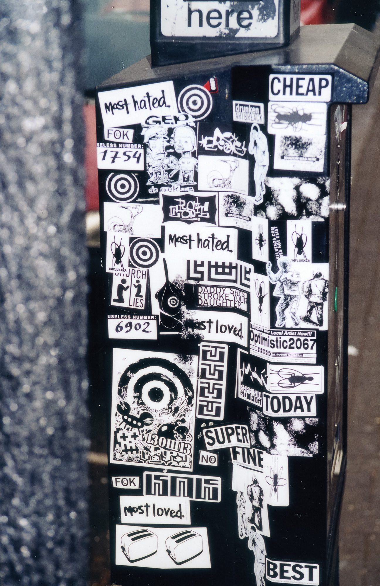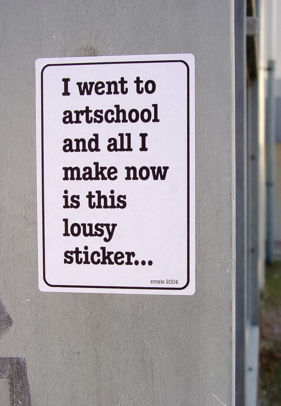 Gleichzeitig studierte EROSIE von 1995 bis 1999 Illustration an der Willem de Kooning Kunstschule in Rotterdam. Im Jahr 1997 nahm er an einem Austauschprogramm an der School of Visual Arts in New York teil. Zu dieser Zeit tauchte auch dort Street Art auf und er entdeckte Werke von Andre the Giant, REVS/COST, ESPO and WK Interact und war fasziniert. Seit dem Besuch der Kunstschule hatten Jeroen und seine Freunde Zugang zu Computern, Photoshop und Laserdruckern, um das zu produzieren, was er 1997/1998 entwickelte: Paste Ups und Sticker. Er wollte damals eine Verbindung zwischen Illustration und Buchstaben/Wörtern schaffen und diese auf der Straße veröffentlichen. Er experimentierte sogar mit sieben Zentimeter großen Stempeln mit Stempelkissen und hinterließ die selbst gestalteten Stempelmotive an Masten und Stromkästen. Dann produzierte er das Bild in Form einer Zielscheibe, indem er runde Aufkleber dafür verwendete und sein Design darauf druckte, um es neben anderen Aufklebern an die Wände zu bringen. Er mochte es, seine Aufkleber mit denen anderer zu kombinieren, mit denen seiner Crew-Mitglieder, space3 oder weiteren, wie in Rotterdam, wo er Jeroen Jongeleen / Influenza kennenlernte.