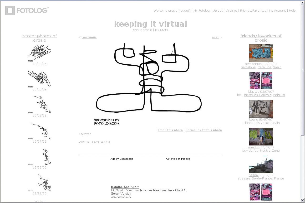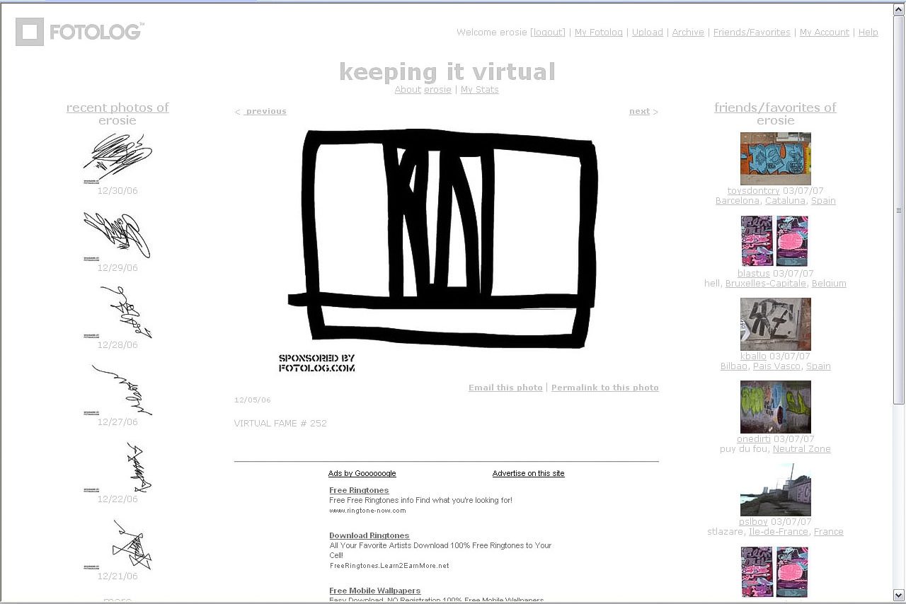 Ab 2004 gab es viel mehr Internetpräsenz und es war quasi die Geburt des „Street Ar“-Labels“ durch Webseiten wie „Wooster collective“, „Ekosystem“ usw. EROSIE begann einige konzeptionelle, nicht-figurative, dekorative textbasierte Arbeiten zu schaffen, Paste Ups für die Straße, mit starken Sprüchen, fast als reaktives Gegengewicht zu dem damals enormen „Eye-Candy-Einfluss“ der Street Art als kommerzielle Sprache, wie er es beschreibt. Das führte dazu, dass er diese „Gegenenergie“ nutzte, um sie nach Innen zu wenden und über neue Ausdrucksmöglichkeiten für sich selbst nachzudenken. 2005/2006 machte er tägliche Uploads eines Tags auf Fotolog, wo Bilder von Graffiti aus der ganzen Welt jeden Tag hochgeladen wurden. Nur EROSIE lud Tags hoch, die er auf einem digitalen Tablet erstellte, einem Werkzeug aus der Illustration, und ein Widerspruch ein virtuelles Medium als Werkzeug zum „Getting up“ zu verwenden in der damals allgegenwärtigen Graffiti-Szene. Er thematisierte dort Toy Styles mit einem digitalem Illustrationswerkzeug und einem konzeptionellen Ansatz, neugierig aber besorgt zugleich über die Freiheit, die sich die von Bildern dominierte Szene nahm, in der das Internet als Medium begann, das endgültige Werk zu diktieren.