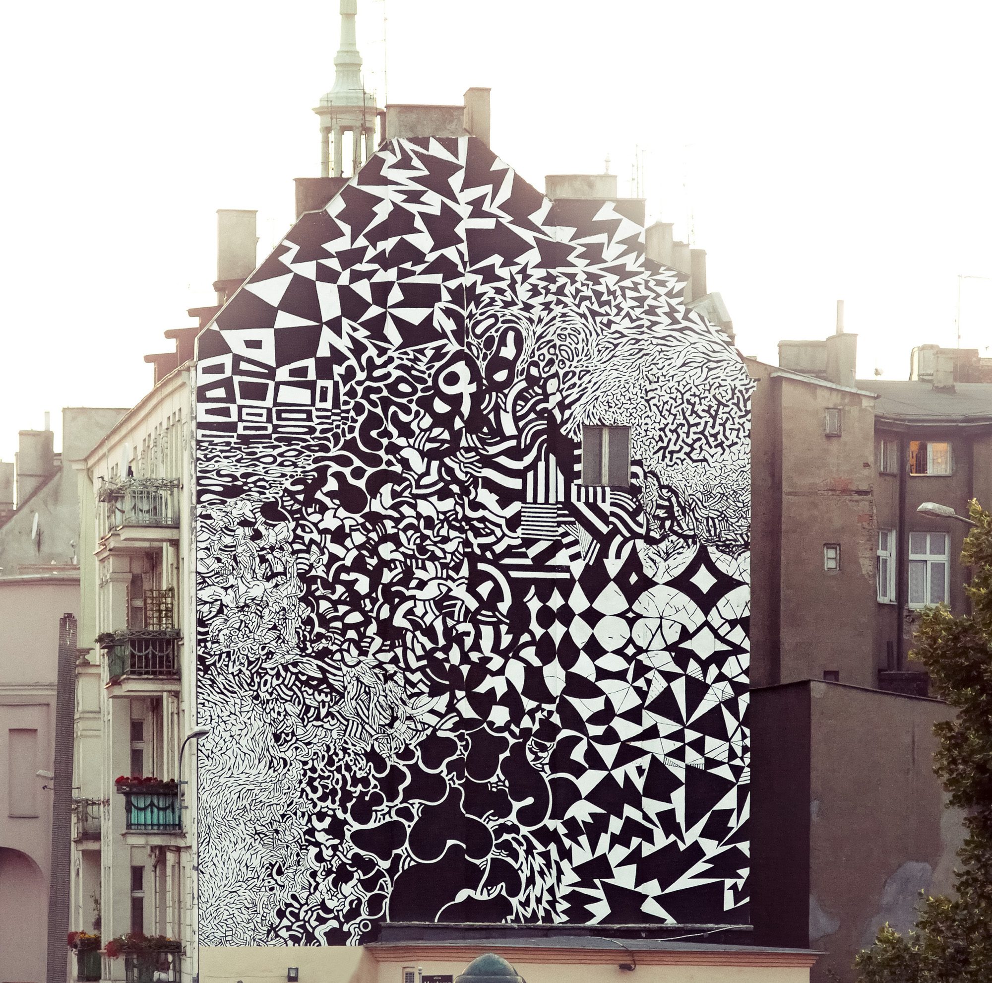 Mit der Street Art-Bewegung, ihrer Präsenz im Internet und ihrer Kommerzialisierung überdachte EROSIE die visuelle Sprache, die entstand, und entwickelte seine „Random Image Generator“-Wandbilder ab 2009. Die Muster, die er verwendete, wurden mit generischen Bildern aus den „Street Art-Klischee-Bildern“ gefunden, ein rationaler Vorwand, um dieses Feld sowohl zu kritisieren als auch zu übernehmen, eine Art reaktionärer Ansatz, der schrittweise zu seinen späteren abstrakteren, introvertierten Arbeiten führte. Kurz danach begann er mit seinen „Horror Vacui“-Wandbildern, die er in schwarz auf weiß von links nach rechts malte und wie eine Schrift auf die Wand zeichnete. Horror vacui bezeichnet in der Kunst den Wunsch, alle leeren Flächen, besonders in der Malerei und im Relief, mit Darstellungen oder Ornamenten zu füllen. Die Muster in seinen Bildern entstanden aus einem Strom des Bewusstseins – er zeichnete alles, was ihm intuitiv in den Sinn kam. Es war wie eine zeichnerische Improvisation mit dem Pinsel, er ging die Register in seinem Kopf durch, schob sie durch das System und füllte den ganzen Raum, als ob er Angst vor der Leere hätte, wie eine endlose Zeichnung. „Graffiti kann auch als öffentlicher, räumlicher horror vacui, als organische visuelle Auffüllung des Raums, gesehen werden. Die „Horror Vacui“- Murals waren wie eine Kombination aus diesen beiden Welten: mit der Linie eines Zeichners und der allumfassenden Geste eines Graffiti Writers. Aber sie reflektierten auch den allgemeinen Exzess in der kommerziellen Bildsprache und berührten das Thema „Was soll das bringen?“. „Was ist der Sinn?“, sagte EROSIE 2017 (Interview in Juxtapose Magazine*).