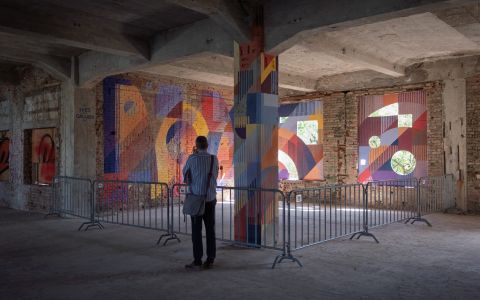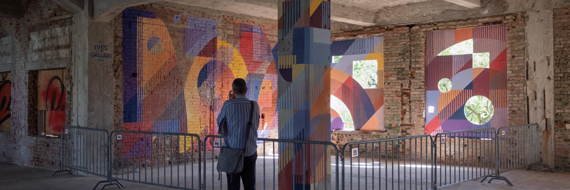 Das historische Gelände mit drei Gebäuden, Schutzraum und grünem Innenhof wurde eindrucksvoll umgestaltet. Verlassene Flure, bröckelnde Wände und Spuren der Vergangenheit treffen auf großformatige Murals, Illustrationen, Installationen und multimediale Werke. Der Kontrast aus Architekturverfall und zeitgenössischer Kunst schafft eine besondere Atmosphäre, die das Festival seit jeher auszeichnet.
