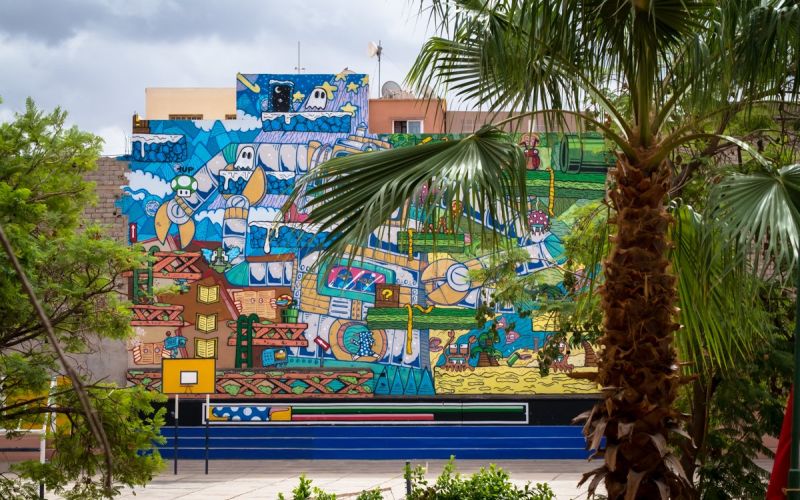 poes und jo ber mural in tariq-ben-ziad-schule, marrakesch