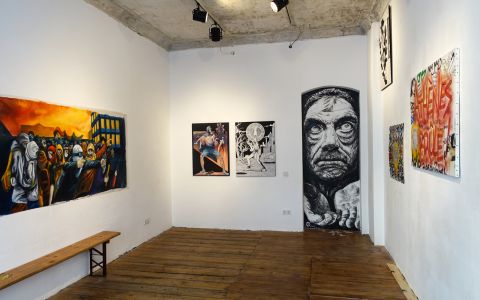 exhibition with the street artists wild drawing, scar one and oré