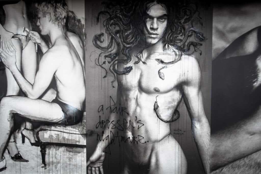 the photographer mario testino invited 3 artists to the finissage to work on his pictures. the results could only be seen on 19 november at the helmut newton museum.