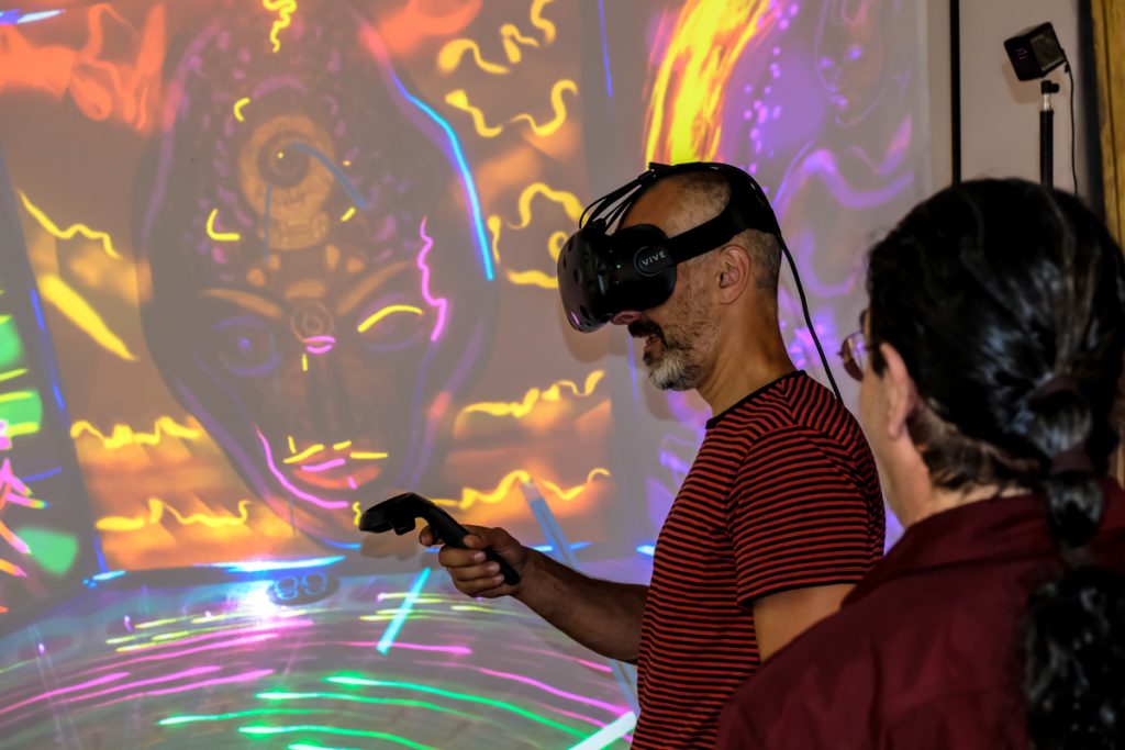 The evening was characterised by live performances. Visitors could become sprayers themselves in a VR installation. Through a video link to the artist SP38, who has been active in Berlin since the 90s, visitors could witness another live painting action.