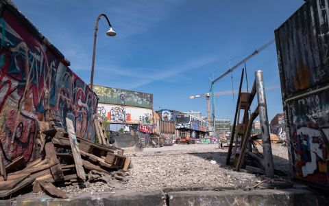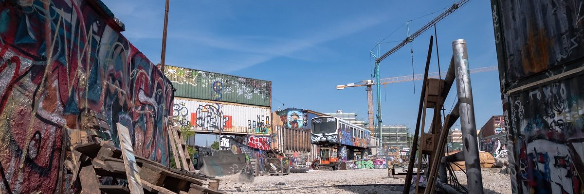The old Viehhof grounds in Munich have been a popular meeting place for Graffiti Writers since a long time. Next to the Hall of Fame Tumblingerstrasse there is – in an impressive container castle – the cultural site “Bahnwärter Thiel”, where painting is also allowed. A few discarded subway wagons are also included, which are used as a canteen or working spaces.
