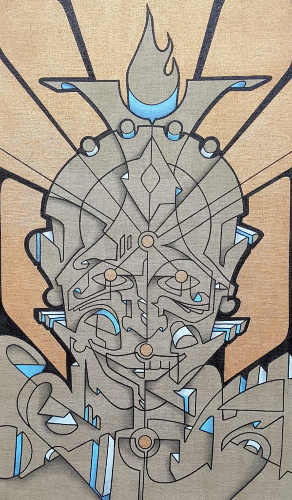 NEON is a precise and technically extremely experienced writer. For over 30 years he has been painting in Semi-Wild-Style, Wild Style and Bone Style. The Bone Style was developed and transmitted by CEMNOZ from Munich to NEON. The “skeleton” of the letters is first painted like a sketch and then wrapped around these “bones” of the letters with “meat”. Thus an organic structure is achieved, a complex interlaced composition of the letters, and as in labyrinths, the view is lost to decipher the letters, which despite rigorous construction contains dynamics, momentum and movement. As early as the 1990s, NEON became interested in the transposition of style into three-dimensional forms in order to create “letter sculptures”. With polystyrene, plaster and lightweight concrete (materials from the stage design), NEON experimented with forms and shapes and created large-format sculptures from interlaced capital letters of N, E, O and N. In cubus form, as relief or as stucco for the ceiling, he developed new forms and possibilities to artistically incorporate Wild Style into objects. At the beginning of 2000, he placed one of his large painted reliefs in Berlin on the former subway house on Eberswalder Strasse in the middle of the gable. It fitted wonderfully into the architecture, but unfortunately only stayed two days.
