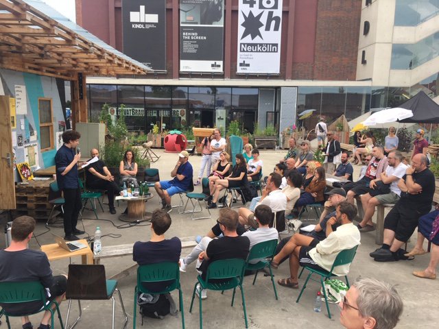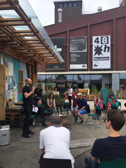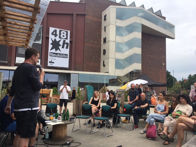 For 48h Neukölln we wanted to stimulate a new discussion, on the last sunday afternoon of the festival, to complement the marathon art action in public space at the Kindl Center for Contemporary Art with a bit of theory. Lectures and a subsequent public panel discussion were happening to elaborate visions of the future for the mediation of urban arts, this multi-faceted culture, movement, art forms and art movements.