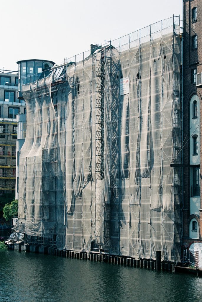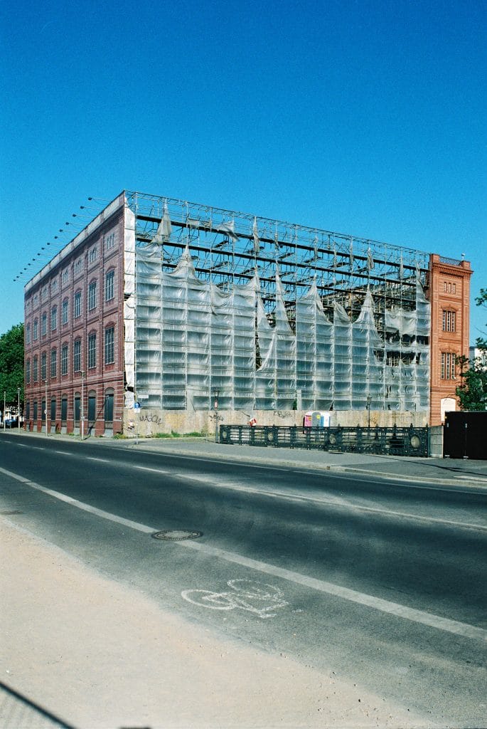 Berlin, located in the center of Europe, has been growing and changing faster than any other European city, especially since the fall of the Berlin Wall. Whether through new constructions or renovations: construction sites are a part of Berlin’s identity. The Berliner photographer Jürgen Große has been documenting the urban development of Berlin with his analog camera for over 30 years. Though not defined as architectural photography, Große’s work deals with architecture in its own terms, for example by capturing the optical changes during phases of construction. In addition, the photographer repeatedly deals with other random forms and structures of urban space, as well as with “found objects” on the street. All of his photographic motifs have a life of their own; they are structures of chance created by human hands, mostly unintentional forms that are constantly in flux, photographically captured by Große in a certain state and with a defined aesthetic.