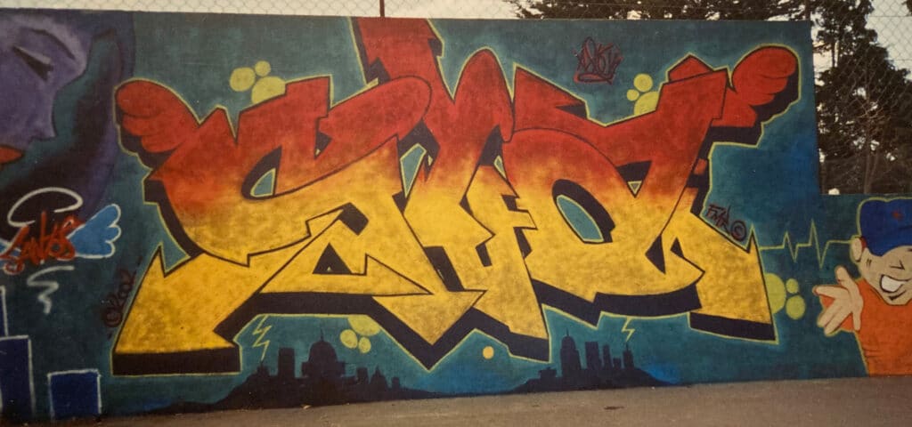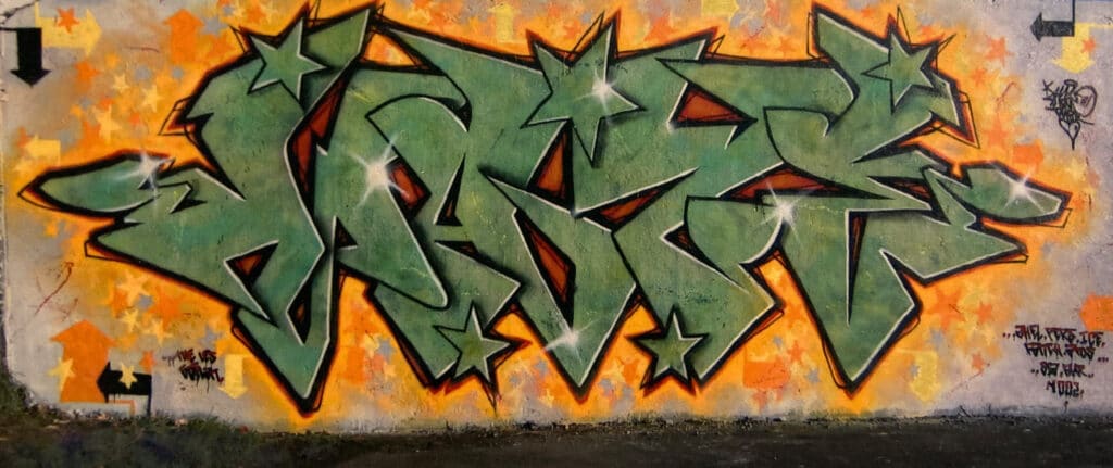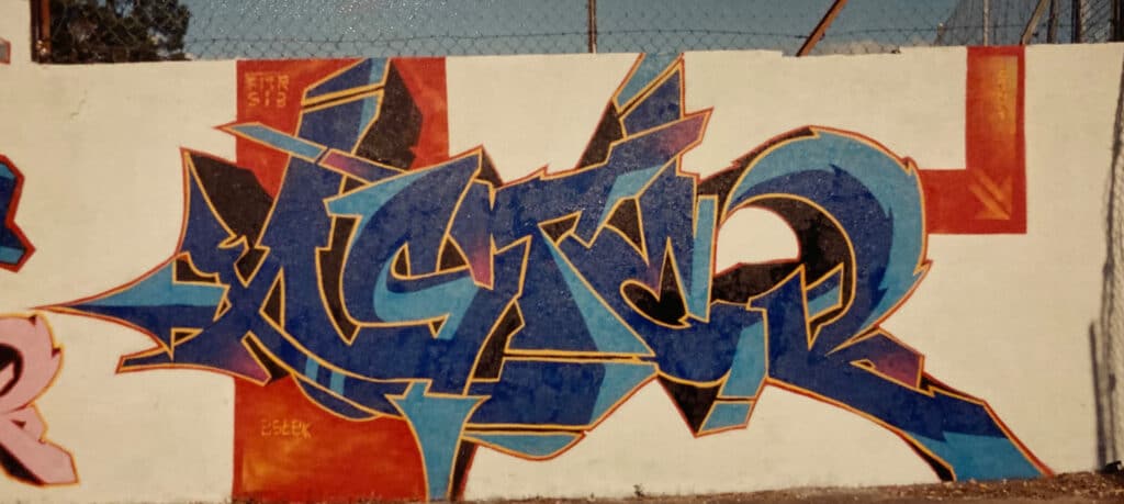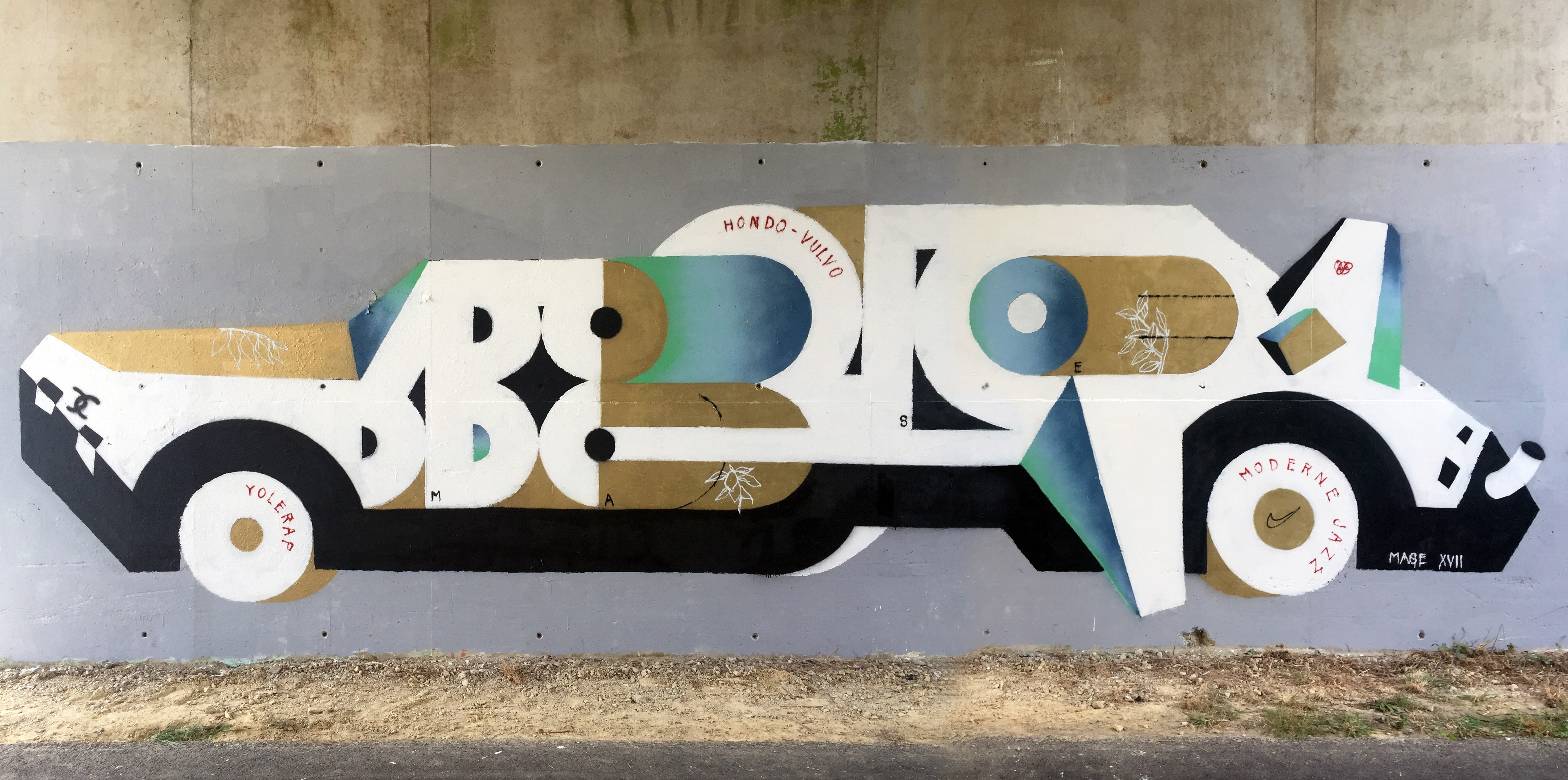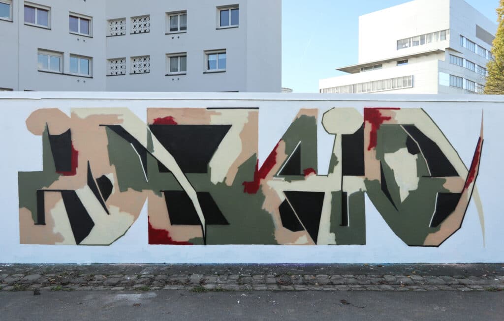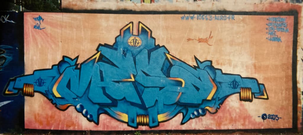 Arnaud Enroc was born in 1983 in France, in Brittany, in Quimperlé. After a time spend in Lyon and Rennes, he lives actually in Nantes. At the end of the 90s, he discovered graffiti writing in the city of Lorient and Brest and was fascinated. Again and again he drove to those cities to examine new pieces. Through images of graffiti in the press, in some skate magazines and in the “Radical” magazine in France, his interest grew until he started drawing himself, buying spray cans and trying his hand on wooden boards in his parents’ garden. A friend of his was also enthusiastic about it and became active himself. Together they painted scrapped vehicles in the countryside at first. At that time, his first moniker was ASTEK and there was hardly any graffiti in the rural area, even in abandoned factories the two boys were the first to leave graffiti pieces. Only in the city of Brest was a graffiti store for accessories those days and when Enroc got his driver’s license at 18, he was mobile and could explore more places with graffiti and therefore meet other writers. Initially, his stylistic influences were in classic graffiti: wild style, semi wild style and 3D style. In Brest the crew C29 painted mainly in wild style, in Lorient the crews MOKER and BAN and especially DINO left striking pieces in a 3D style that impressed Enroc, as well as throw ups by MOSEN. Few times later, he discovered pieces by ARS crew, who painted in a less classic style, which later on, would inspire Enroc as well. As of 2002 Enroc painted MASE/MAZE and became a member of his first crew SIA, founded by him, L’OUTSIDER and AHEL. At that time the pseudonyms of the three members were SANTOS (later AHEL), INTOX (later L’OUTSIDER) and ASTEK (later MAZE). This crew then became YOLERAP with other members such as PomZ, SNOBE, TAKOS, DGLS, PACK, AHEL, ICER and BONER. From 2001 to 2006, Arnaud Enroc was at home in classic graffiti writing until he got bored with it. However, his great passion for typography remained, and he attempted new visual languages for painting his name in the following years.