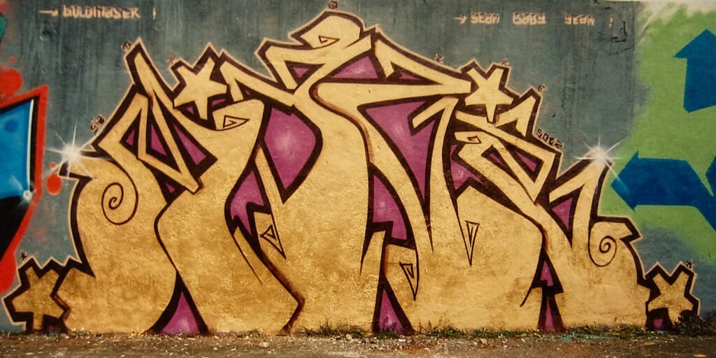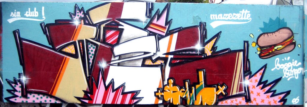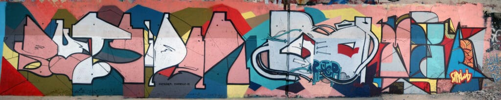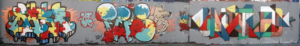 At this time, in 2015, he becomes part of the friends collective Moderne Jazz, which now has many members, and all break with the classic graffiti codes and engage in novel forms and partly abstract graffiti (GSULF, MATI, TORPEN, FRIDA, AKBAR, NOTEEN, DJOB,DUCON, OBISK, RIOT, QUENTIN CHAMBRY, JORIS GOULENOK, HAMS, OPAR, CHRIST, SOIR, L’OUTSIDER. YMMOT, YOR81, COR21, ISHEM, ELIOT, MAZE). In 2016, Enroc also becomes part of Crew YY with many other members of Moderne Jazz, and integrates a bit later the crew CDG. The mutual influence of the crew members with their diverse styles is noticeable in some, and yet each writer has developed their own unique style. According to Enroc, the works of ISHEM, GSULF and YOR81 in particular have certainly left their mark on his own creative work, which sometimes unconsciously appears in other forms in his visual language.