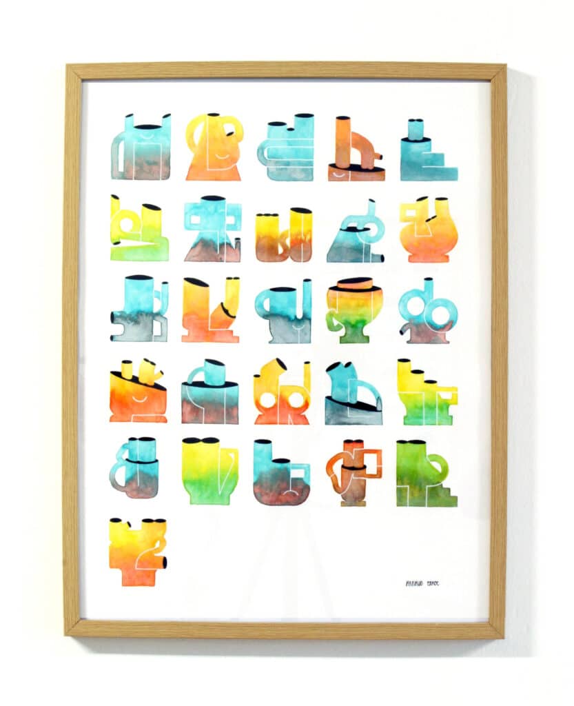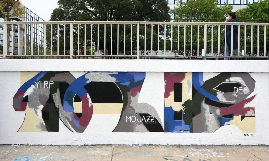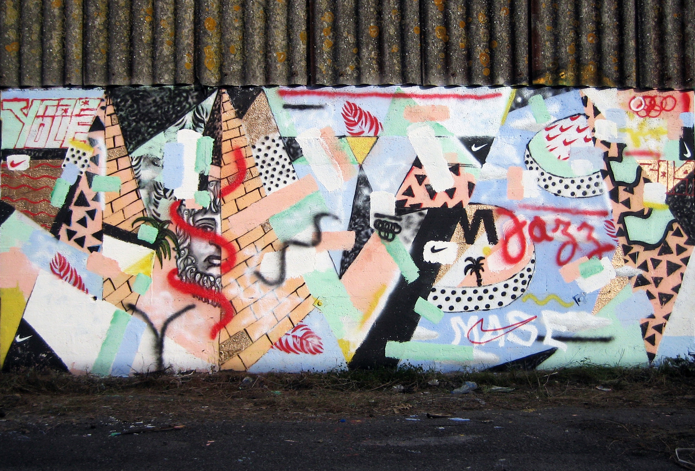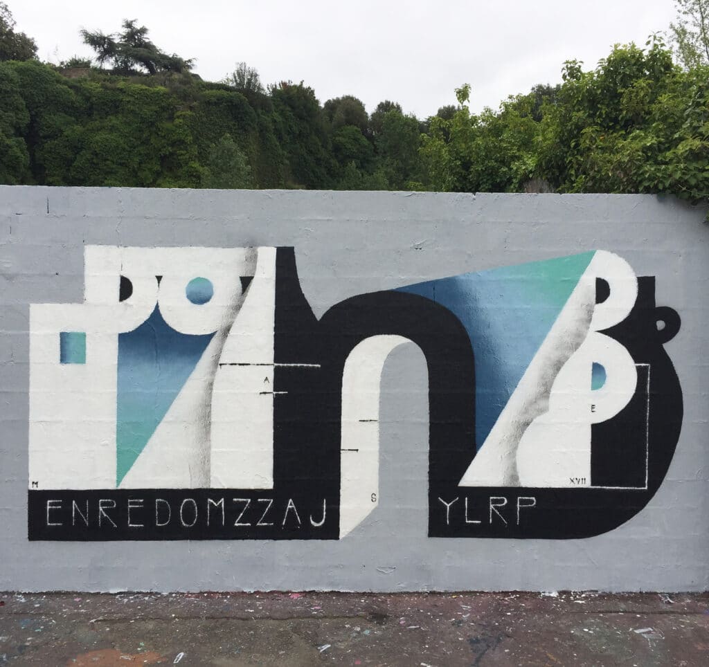 After 2013 Enroc painted even more experimental. The legibility of the letters interested him less and less, his pieces were increasingly only about shapes and motifs. For this, he also liked to fall back on kitsch, was inspired by random images from the photo platform tumblr, used ornaments and simple figurative representations, such as the motif of the vase, which appears again and again in his work to this day. He also added quotes in the form of motifs from classical antiquity, such as columns, or classical modernism, such as the world-famous silhouette by Matisse ” Nu bleu“. The French artist Matisse continues to be a source of inspiration for the French writer with his planar coloring and tense lines, playful pictorial structure, lightness of his pictorial themes and, in his late work, his concentration on the essential. Just as the play with emptiness and fullness is an important theme in the silhouettes, the paper cutting, it is also a theme in Enroc’s work. Modern painting inspires Enroc for his visual language till now, even if, according to him, he has not dealt with it in depth. But his work continues to revolve around the letter, which he constructs and deconstructs in his pieces, abstracting it, stylizing it into geometric forms or even making it disappear, all in favor of an experimental picturesquely aesthetic.