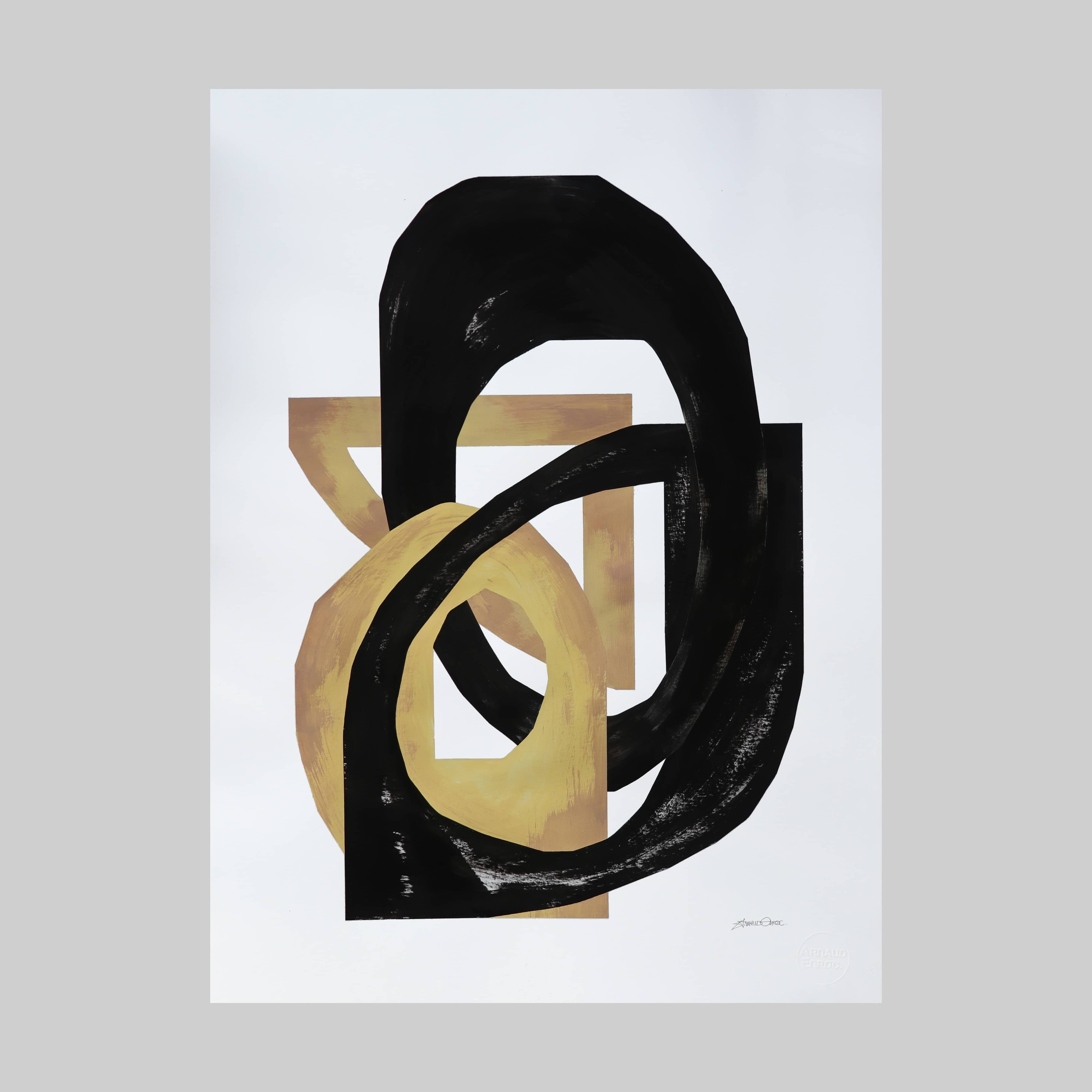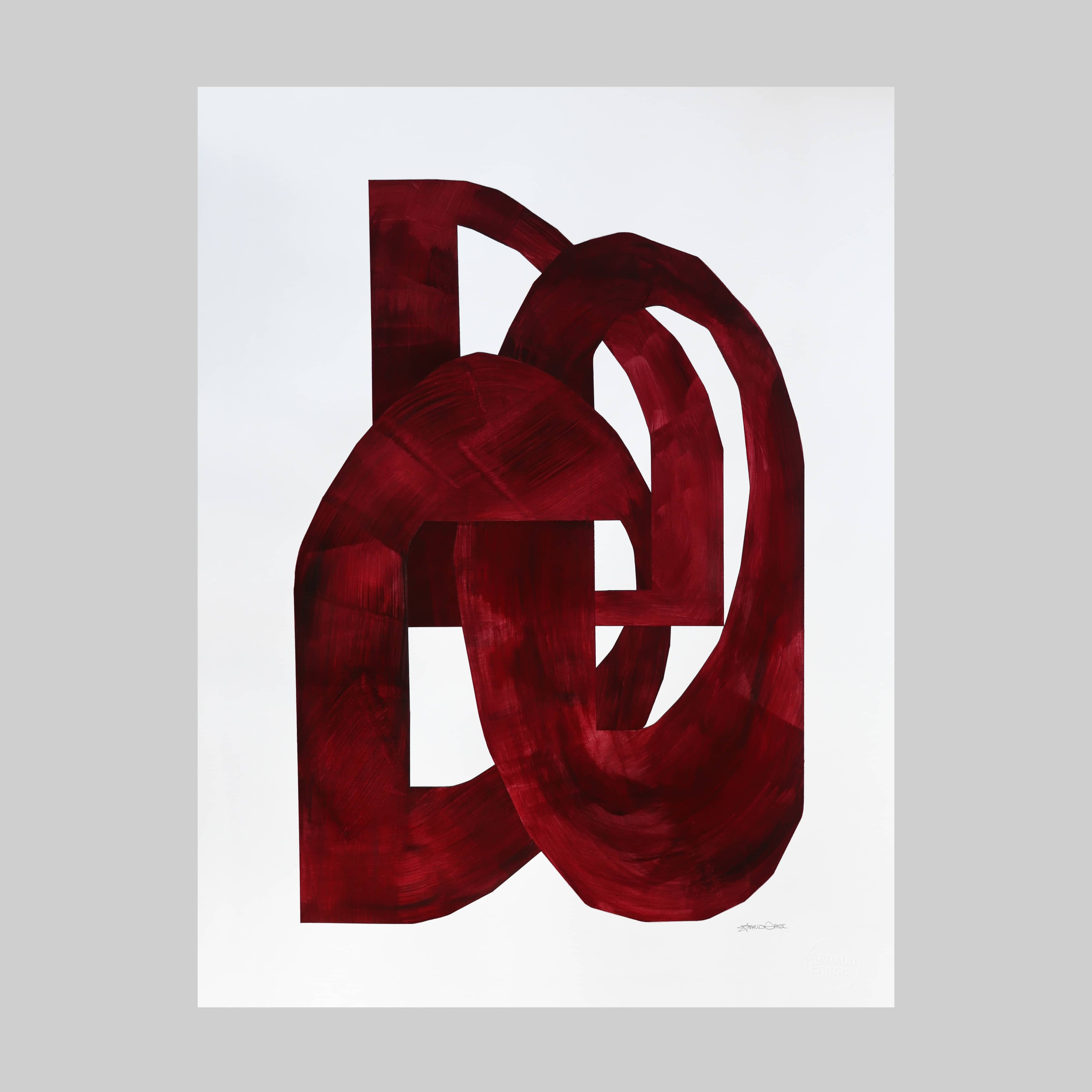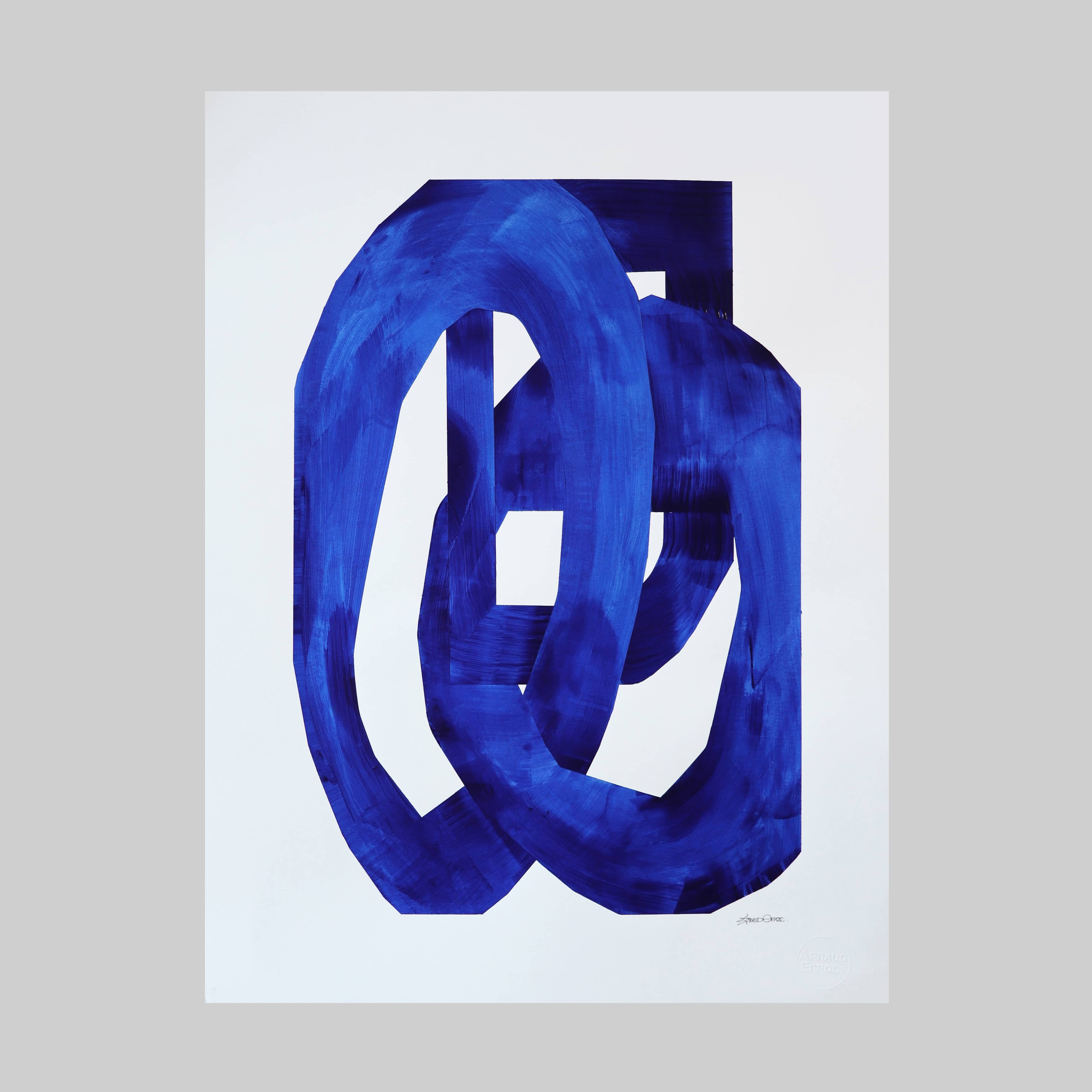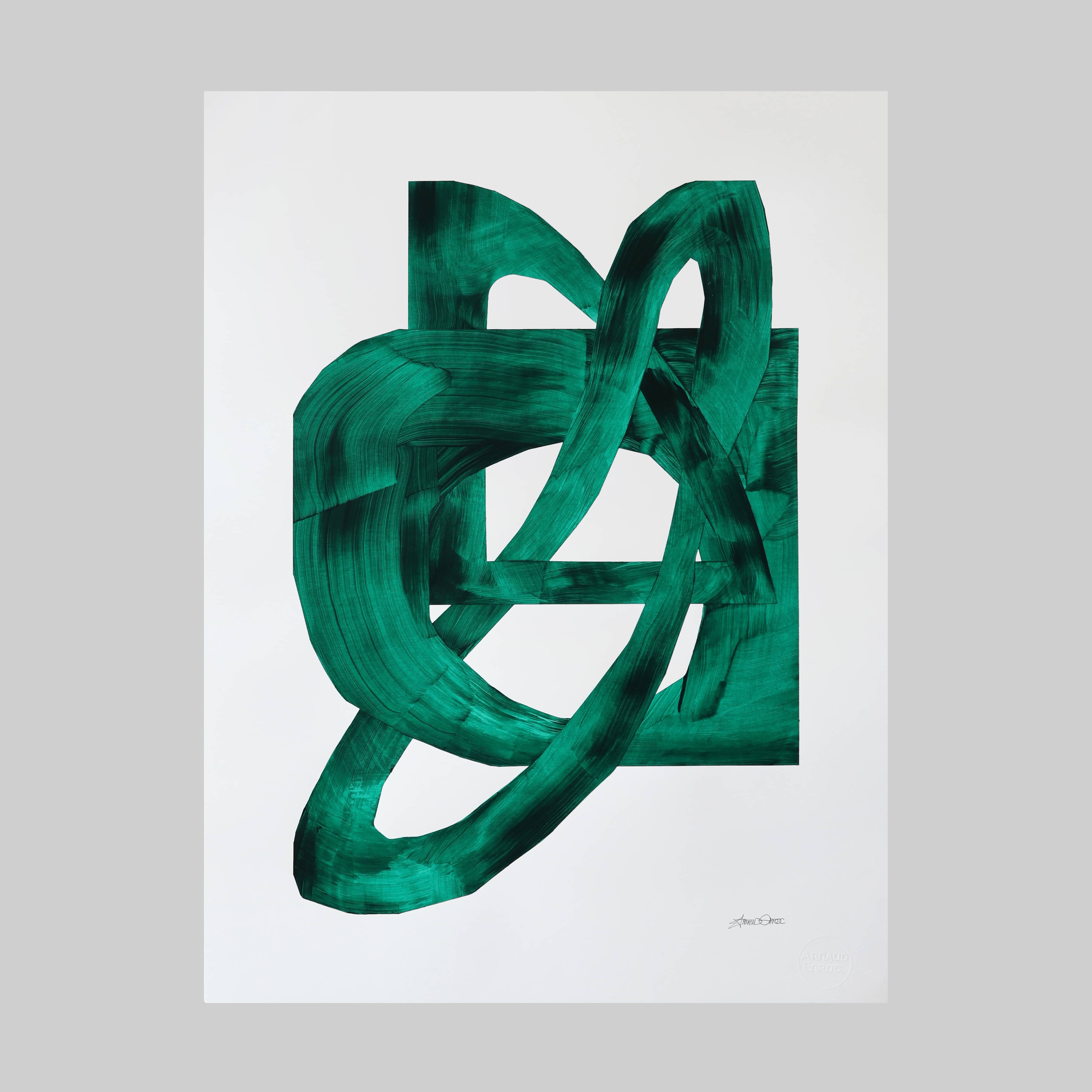 Since 2011, Enroc has been drawing regularly with acrylic paints on paper. For this, he uses thick brushes and plays with color transparencies that make the brush trace and painting gesture clearly visible. A broad line forms a straight, angular as well as round simple interconnected form, a floating form in space “written” with one line. Spontaneously, intuitively and dynamically realized, the works seem free and yet constructed, spontaneous in the finding of form, but noticeably executed with a skillful confident gesture.
