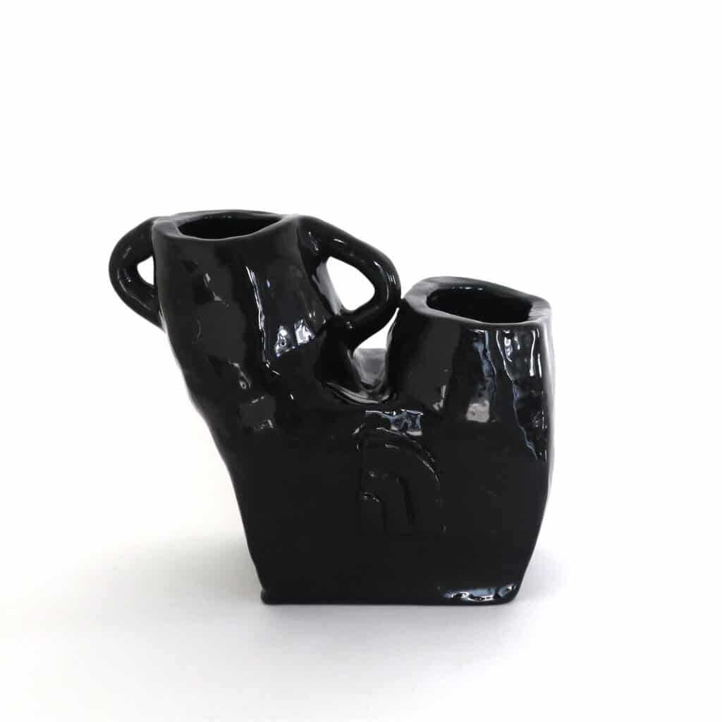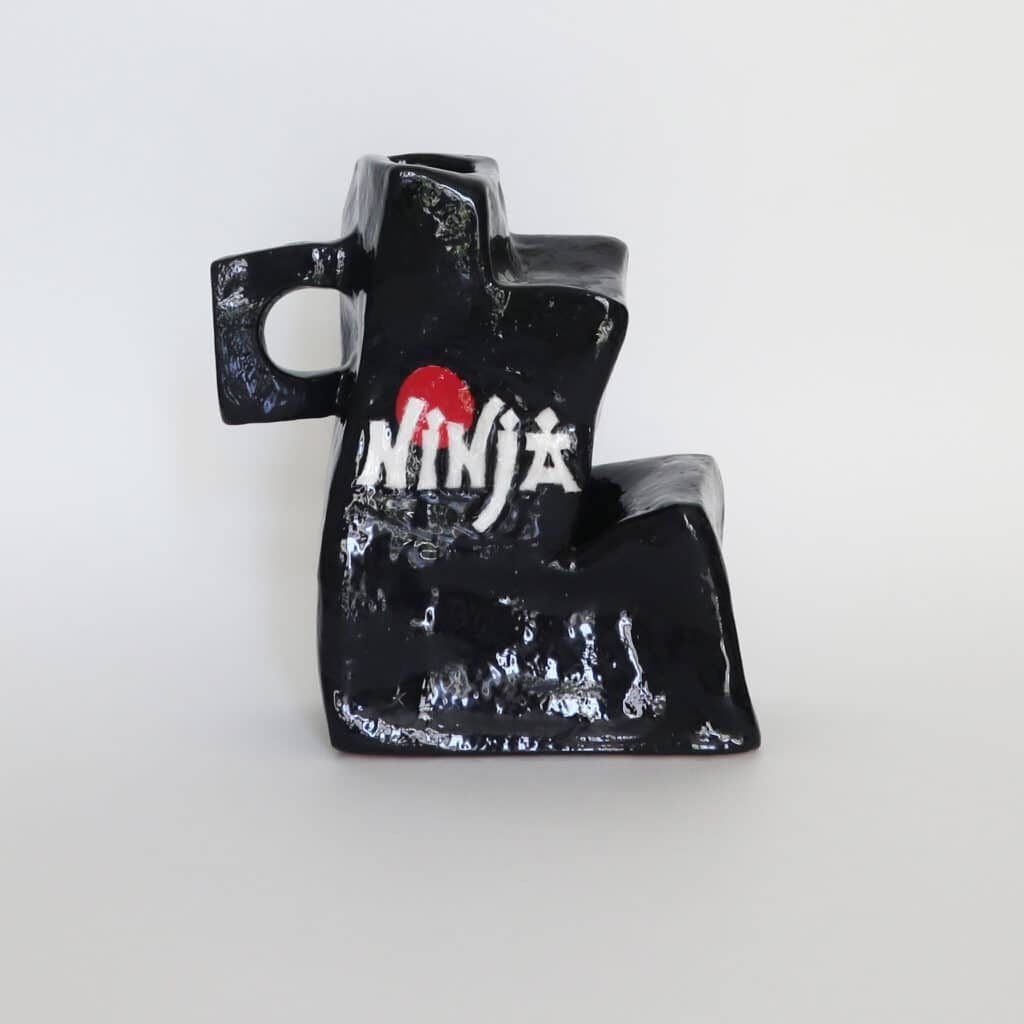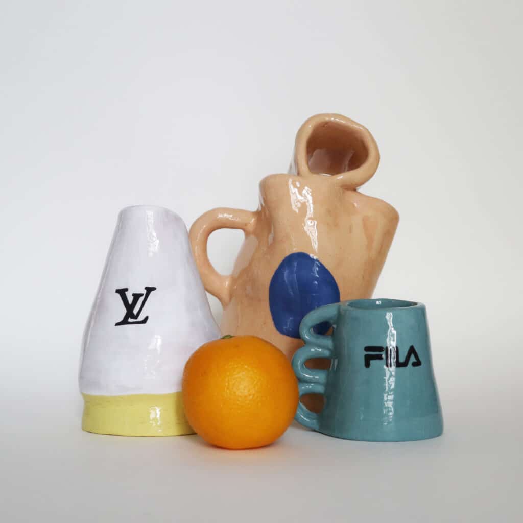 The French artist’s interest in the motif of the vase led him to work with clay and ceramic art. He wanted to create the object itself, shape it, fire it, paint it. He created small sculptures, objects that remain recognizable as a vase, through the handles, for example, and yet are deformed in their classical form, misshaped, intuitively imperfect and “childlike” depicted. Some with painted logos of Nike, YSL or Fila are dadaistically led into absurdity. Just as Enroc repeatedly breaks with classical modes of representation for his graffiti pieces, working more freely and playfully by giving space to intuition and following it, he also uses this very same attitude to create his studio works.