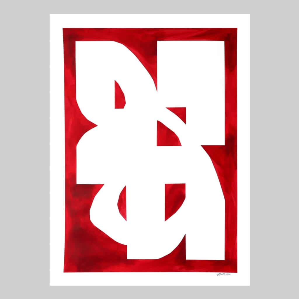 In 2017 Enroc developed the reduced form of a car with rectangles and circles (for the wheels.), which he used in some of his pieces. The wheels gave Enroc the idea to animate them with a software on the photo of the piece. He wanted to make them rotate and thus created his first GIF animation. Later, he achieved more animations with balls rolling along his pieces as if on a track. This new playful digital medium resulted in the creation of specially designed works on the wall: in which all the abstracted letter forms were linked together and constructed so that the ball could roll perfectly along the shapes up and down as if on a “roller coaster” in the painting.