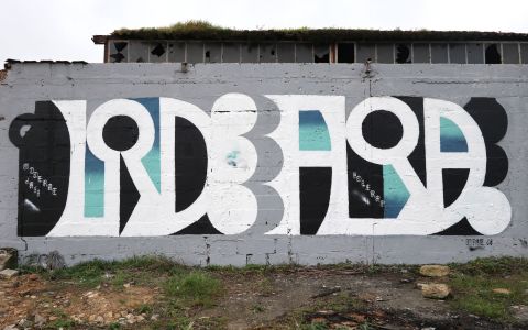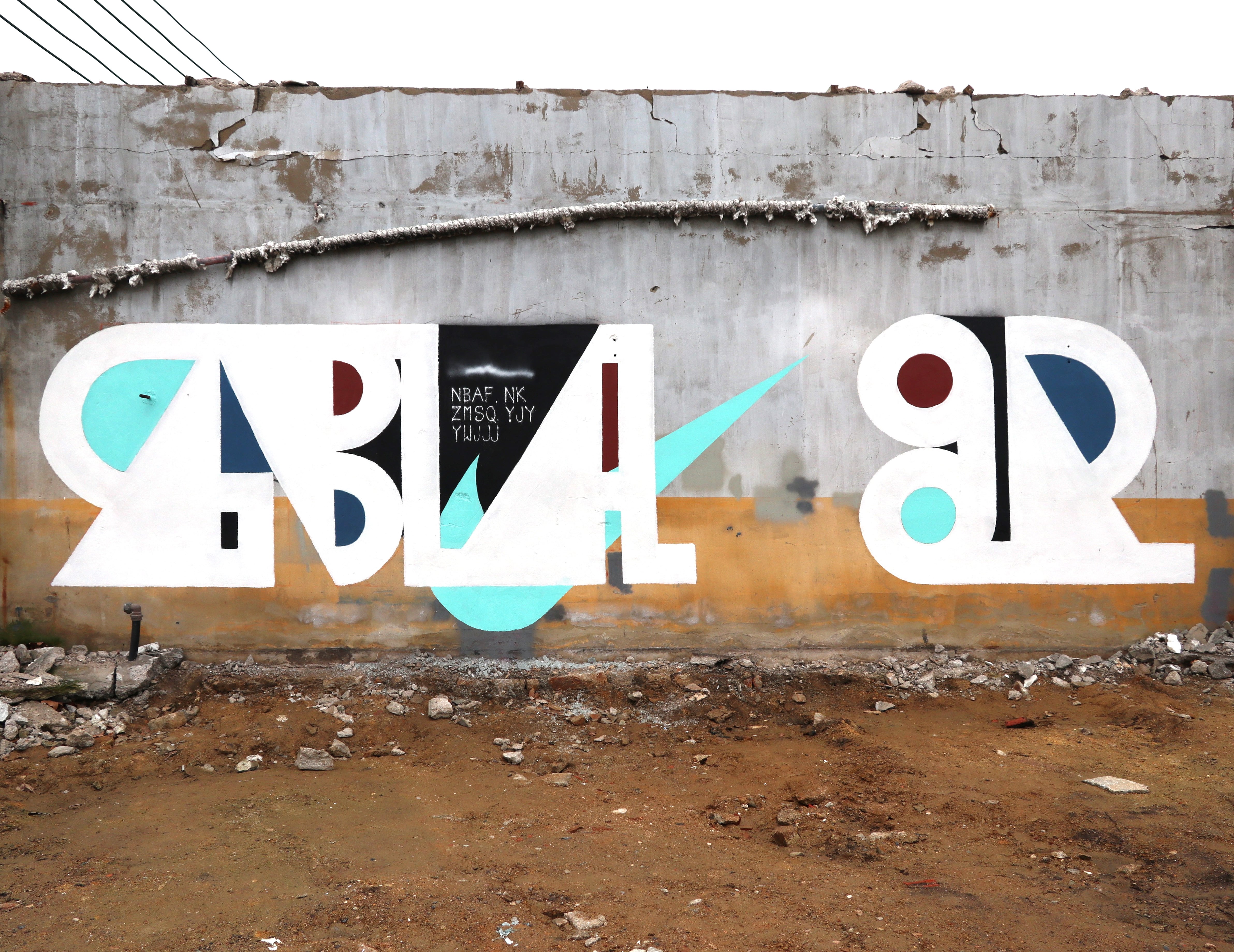 At this time, Enroc increasingly constructs his letters with geometric angular and round voluminous forms that are chained together, drawn from a single stroke as in cursive writing and barely decipherable. The play with emptiness and fullness, outer form and inner forms of the letters blur the logic and legibility of the typeface images. He also integrates into his compositions small simple printed letters, like inscriptions, like scratched graffiti, and letters from other alphabets such as the Cyrillic alphabet or Korean characters. Inscriptions and new letter forms that seem partly antique, cryptic, bizarre and in this context futuristic as well. Enroc likes to play with trace blurring and visual misdirection by using other letters for his writer’s name, such as using the next letter in the Roman alphabet of his four letters of his name for example, thus creating a new name. Since 2014 Enroc likes to integrate the Nike logo in some of his pieces. As a distinctive feature for everyone, it is used here as a pure form, which with its sweep also reminds of the typical arrow or debauchery of a letter in classic graffiti.