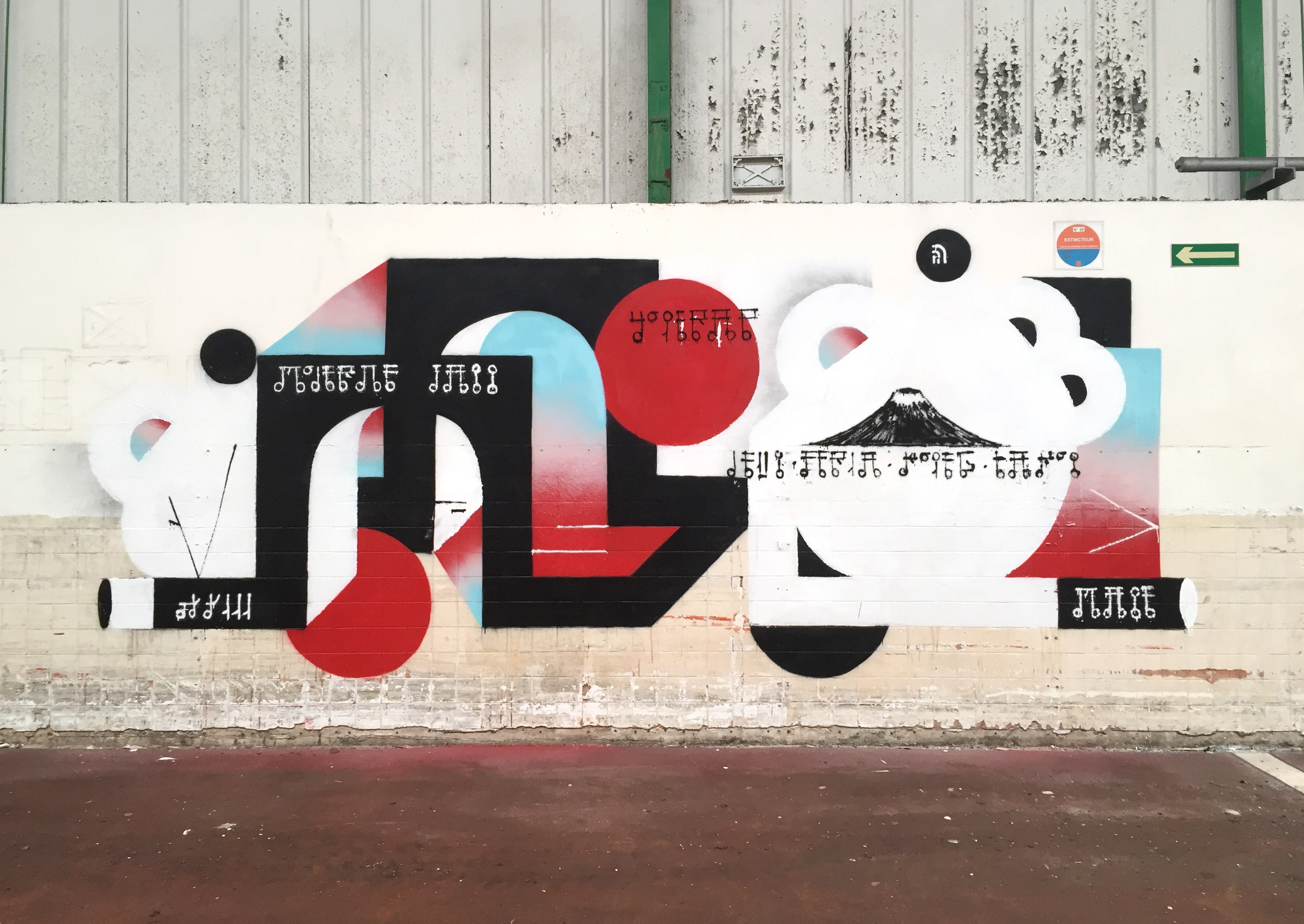 Arnaud Enroc was born in 1983 in France, in Brittany, in Quimperlé. After a time spend in Lyon and Rennes, he lives actually in Nantes. At the end of the 90s, he discovered graffiti writing in the city of Lorient and Brest and was fascinated. Again and again he drove to those cities to examine new pieces. Through images of graffiti in the press, in some skate magazines and in the “Radical” magazine in France, his interest grew until he started drawing himself, buying spray cans and trying his hand on wooden boards in his parents’ garden. A friend of his was also enthusiastic about it and became active himself. Together they painted scrapped vehicles in the countryside at first. At that time, his first moniker was ASTEK and there was hardly any graffiti in the rural area, even in abandoned factories the two boys were the first to leave graffiti pieces. Only in the city of Brest was a graffiti store for accessories those days and when Enroc got his driver’s license at 18, he was mobile and could explore more places with graffiti and therefore meet other writers. Initially, his stylistic influences were in classic graffiti: wild style, semi wild style and 3D style. In Brest the crew C29 painted mainly in wild style, in Lorient the crews MOKER and BAN and especially DINO left striking pieces in a 3D style that impressed Enroc, as well as throw ups by MOSEN. Few times later, he discovered pieces by ARS crew, who painted in a less classic style, which later on, would inspire Enroc as well. As of 2002 Enroc painted MASE/MAZE and became a member of his first crew SIA, founded by him, L’OUTSIDER and AHEL. At that time the pseudonyms of the three members were SANTOS (later AHEL), INTOX (later L’OUTSIDER) and ASTEK (later MAZE). This crew then became YOLERAP with other members such as PomZ, SNOBE, TAKOS, DGLS, PACK, AHEL, ICER and BONER. From 2001 to 2006, Arnaud Enroc was at home in classic graffiti writing until he got bored with it. However, his great passion for typography remained, and he attempted new visual languages for painting his name in the following years.