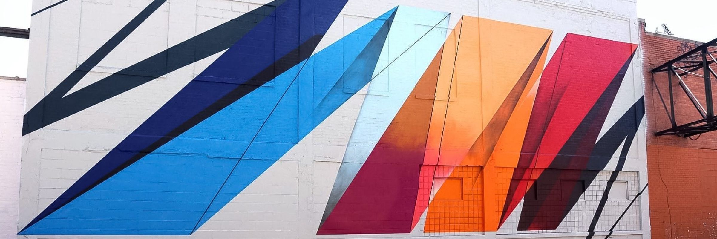 For his wall paintings, he uses a variety of materials to paint, a mixture of exterior house paint and spray paint. First, he draws the structural lines onto the wall with chalk line, graphite and a straight edge. For his abstract works, ROUGH uses maths as well, even though he painted free handed so many years before. For him, there is math within the freehand painting as well. It’s in everything he does at the end but it is just more obvious in the abstract compositions. He explains the need of using math for clarity and understanding where things sit exactly within a painting.