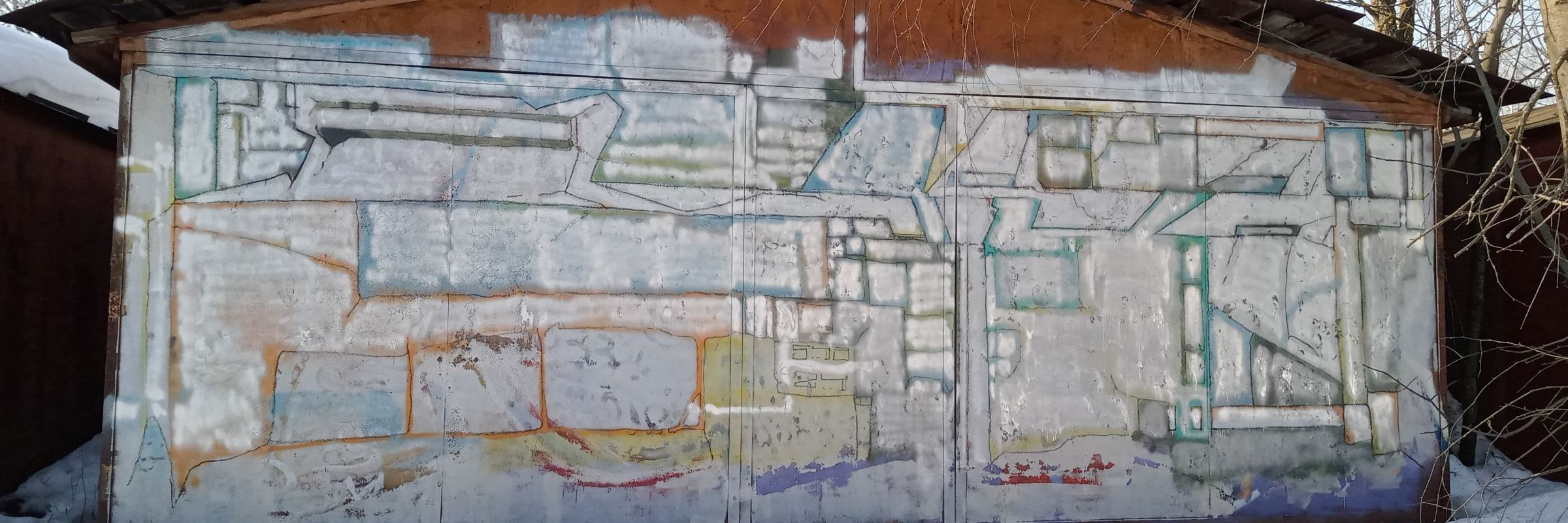 Here I apply a scientific approach and consider the structure of the painting. The work on the wall consists of an outline and a fill in. Contours are limited geometric shapes filled with a certain colour, located inside the constraints. The colour is the emotion. You can change the colour of emotions by colouring the areas with different tones. If you paint over the colour, then the inner boundaries of the psyche appear. If you change the colour or specifically climb on the borders, then something starts happening. For example, during the winter of 24-25, a day I was filming the process of chroming the colours inside the composition, my flash drive failed, which had 30 GB of photos and videos related to drawing during this period. Something like a memory reset occurred, it was difficult to remember what was on the flash drive, and in the morning I felt relieved instead of disappointed about the loss. At the same time, only the second part of the video remained recorded, with the colour already filled in. The emotions and memories kind of disappeared, although I remember that the colour fill was interesting.