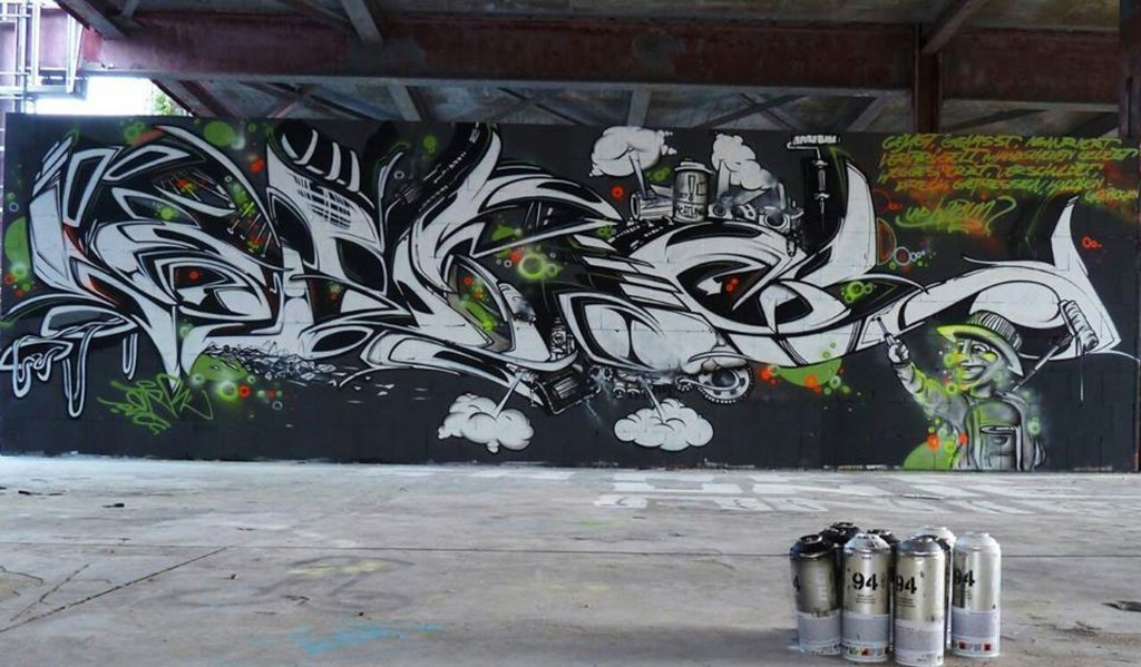 I started around 2002/2003. The first influences came from my older half-brother, who always brought his black book with him when he visited us. Later, there was a friend who regularly came from the city to our village and introduced me to graffiti.