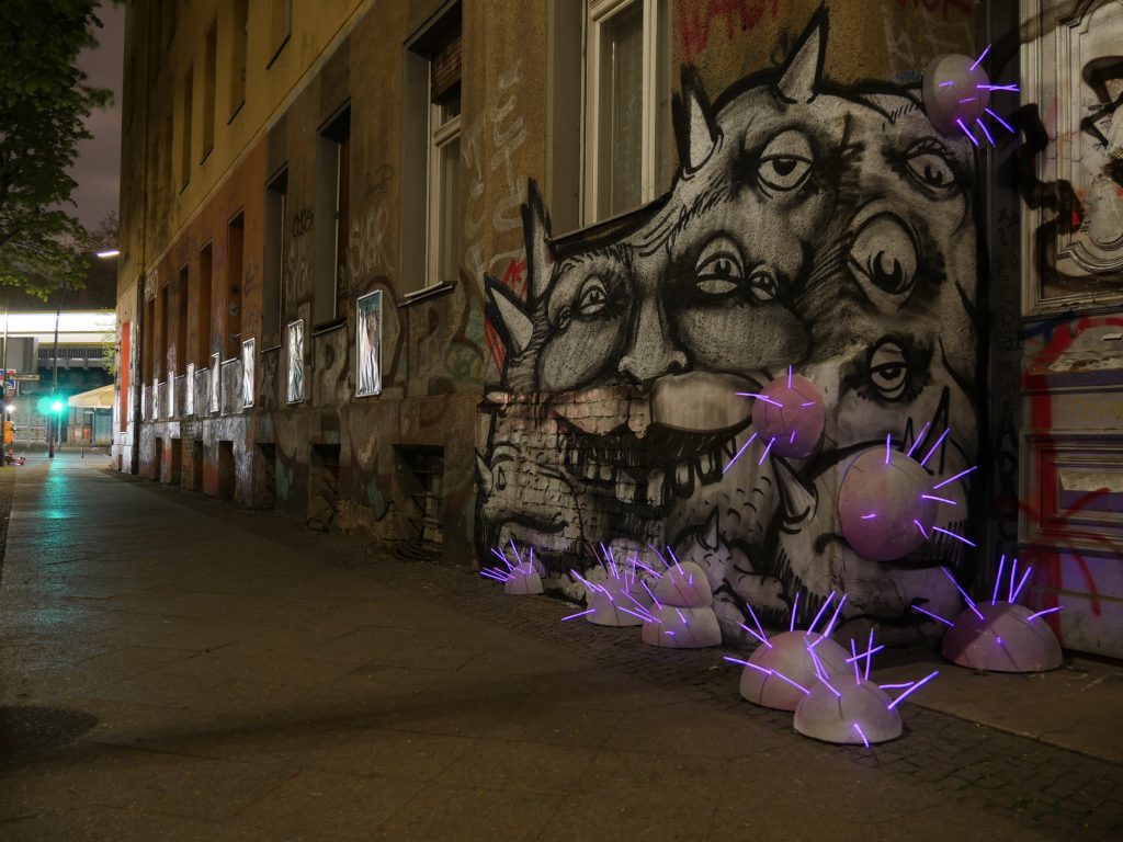 In recent years, I observed more and more spray-painted characters and figurative works in public space in Berlin, whether they’re giant caterpillars, grimaces, figures or even objects like mobile phones. Have you noticed this too, and do you know some of the artists?