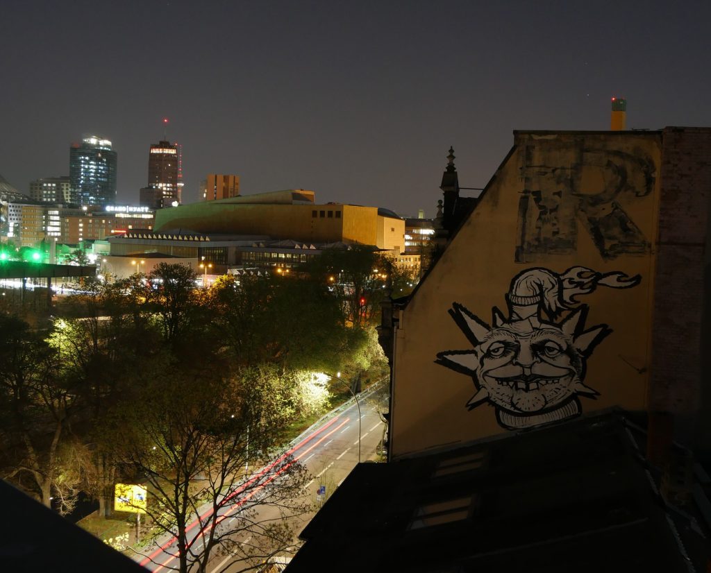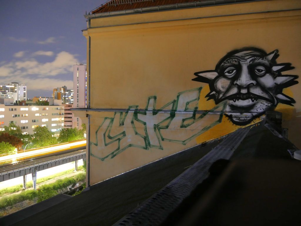 The choice of motif is either spontaneous and freestyle or planned in advance. I would say that the more interesting the spot, the more I think about the motif beforehand. With the fire pot image on a rooftop, for example, I thought it would be cool if it looked like a Molotov cocktail flying towards Potsdamer Platz. But sometimes I sketch motifs in advance and then have to find a spot for them.