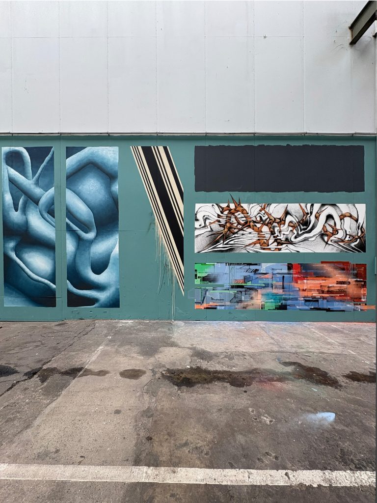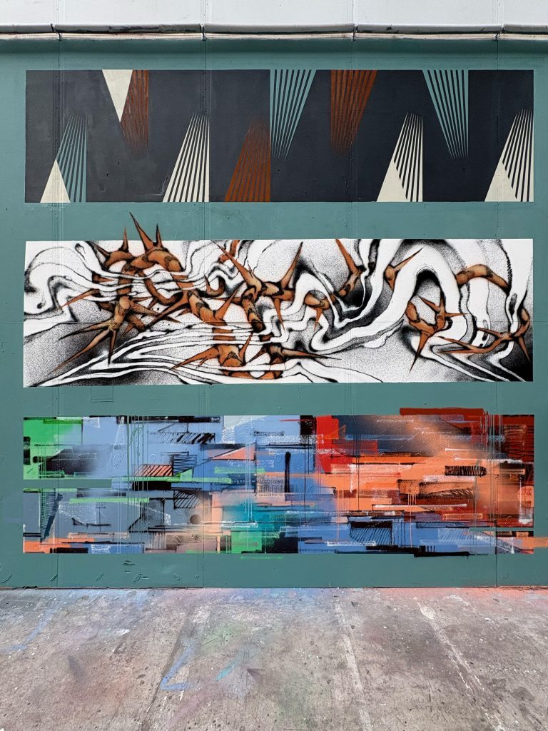 The idea was to have a smaller size of the wall to paint, and thus have more time to meet other like-minded artists. You know many via Instagram but not in real life. And if you have a larger area, you will only be busy painting all day. The social aspect is then left behind. The goal was to have more like a defined canvas format on the wall for each artwork. The idea was not to make one big composition like a regular graffiti jam. The idea is also that our Abstract Sessions are not only about painting but more about the social aspect, to become more a community event.