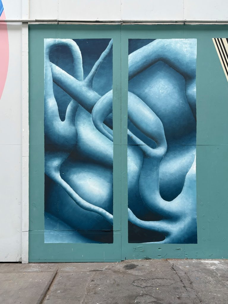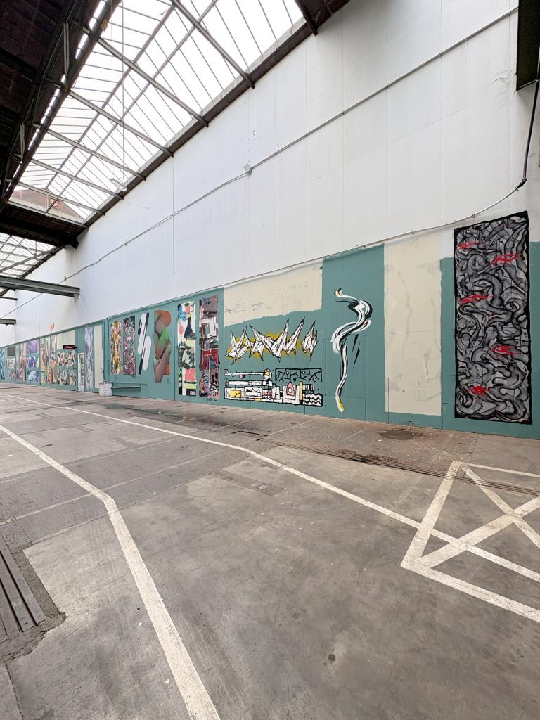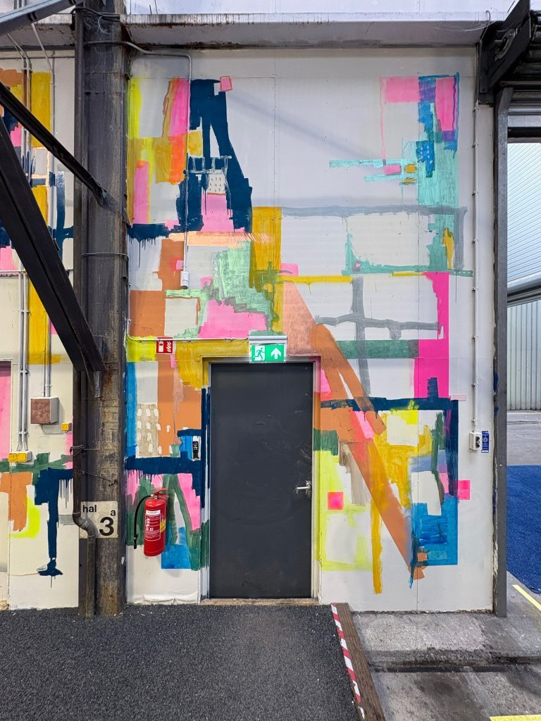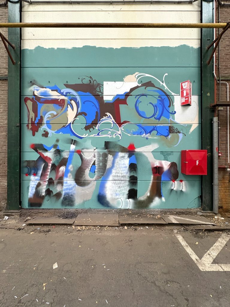 A friend of mine works at the Kabeldistrict as a Placemaking manager. She sorts out things that can be done for just temporary use. She asked to have a talk about a way of finding signage inside the building so people could navigate to the different companies located inside this building. When we walked through this building we passed by a huge wall (64 meters wide and 12 meters high) and I asked what the plan was with this wall. They actually didn’t have a specific plan for this wall. So I came up with the idea to use it as a curated art wall. They liked this plan. Every half a year, I invite five artists to paint a mural of 10 x 4,5 meters. I curated this wall four times already. To get to this big wall you also pass by other useful walls. Every artist who had painted on the big wall has asked about the other walls. So a couple of months ago, I inquired if I could get these walls as well to paint upon. They asked me to take photos of the walls and sent me back a file with notifications which walls I could paint. Now I have about 400 m2 of walls that I can use.