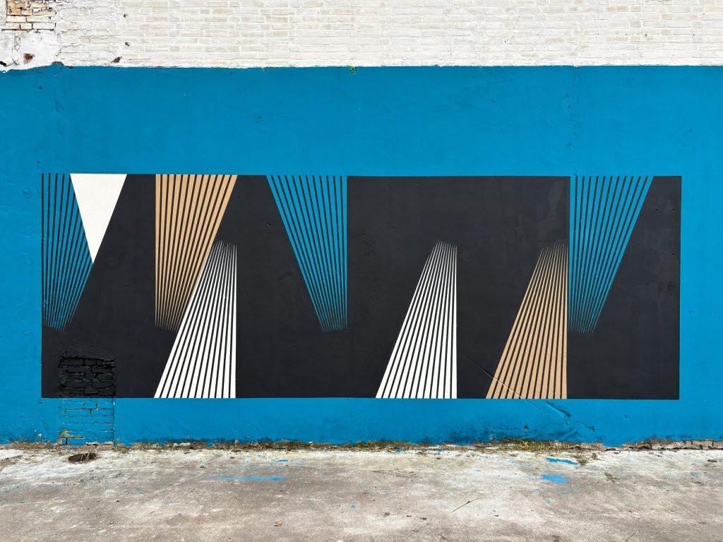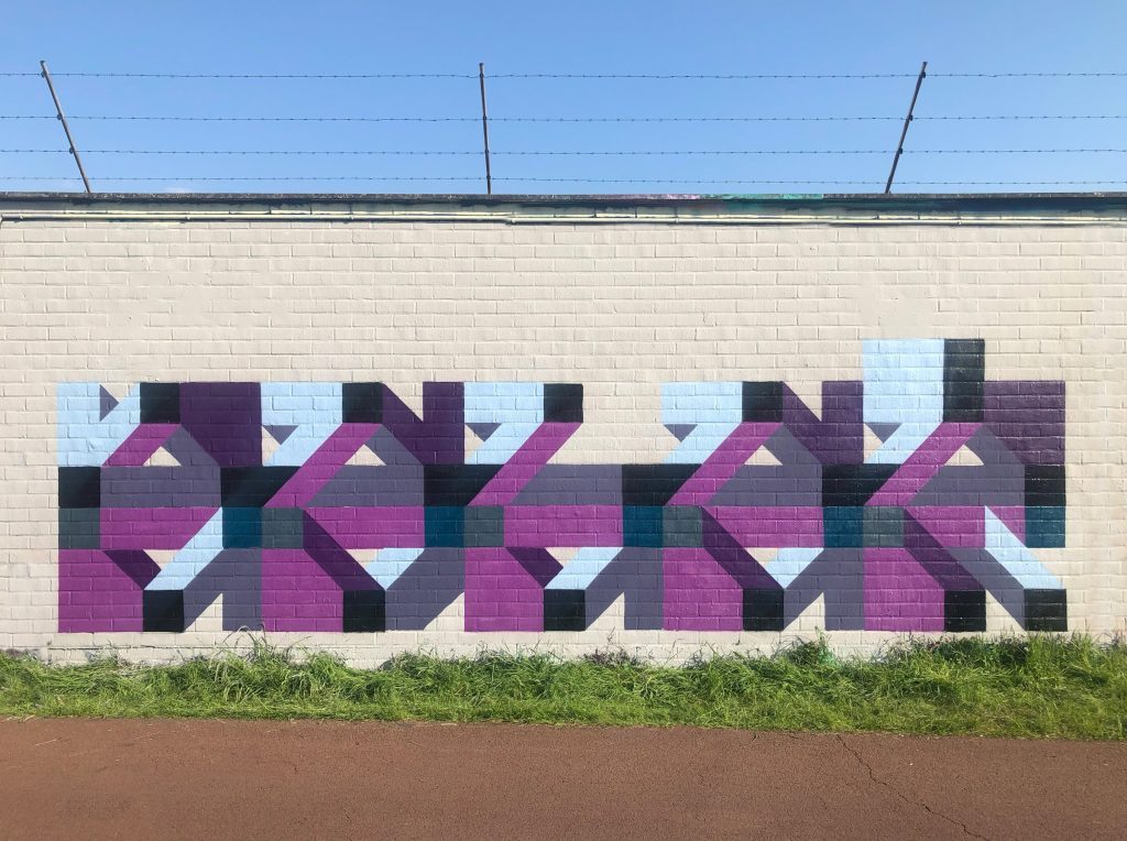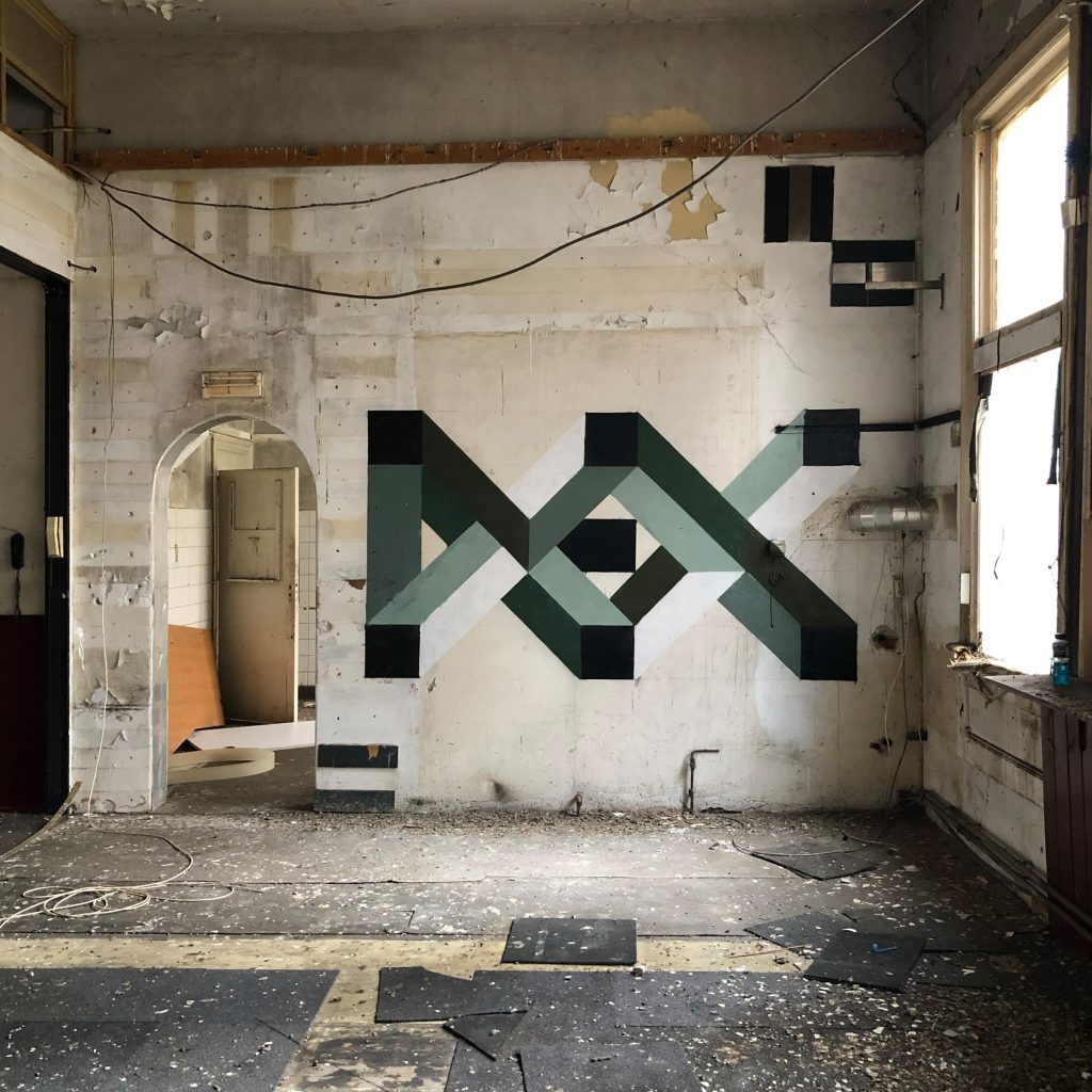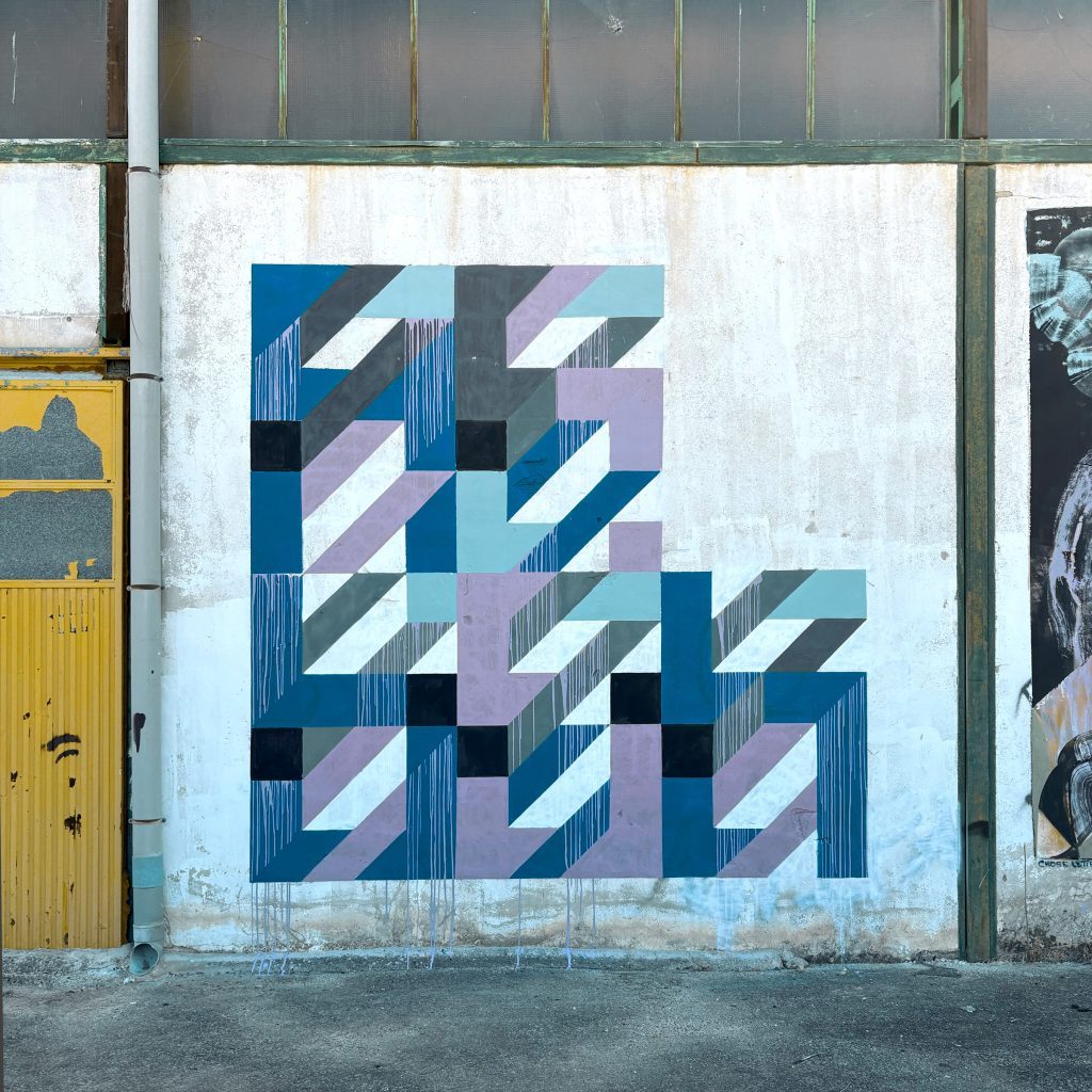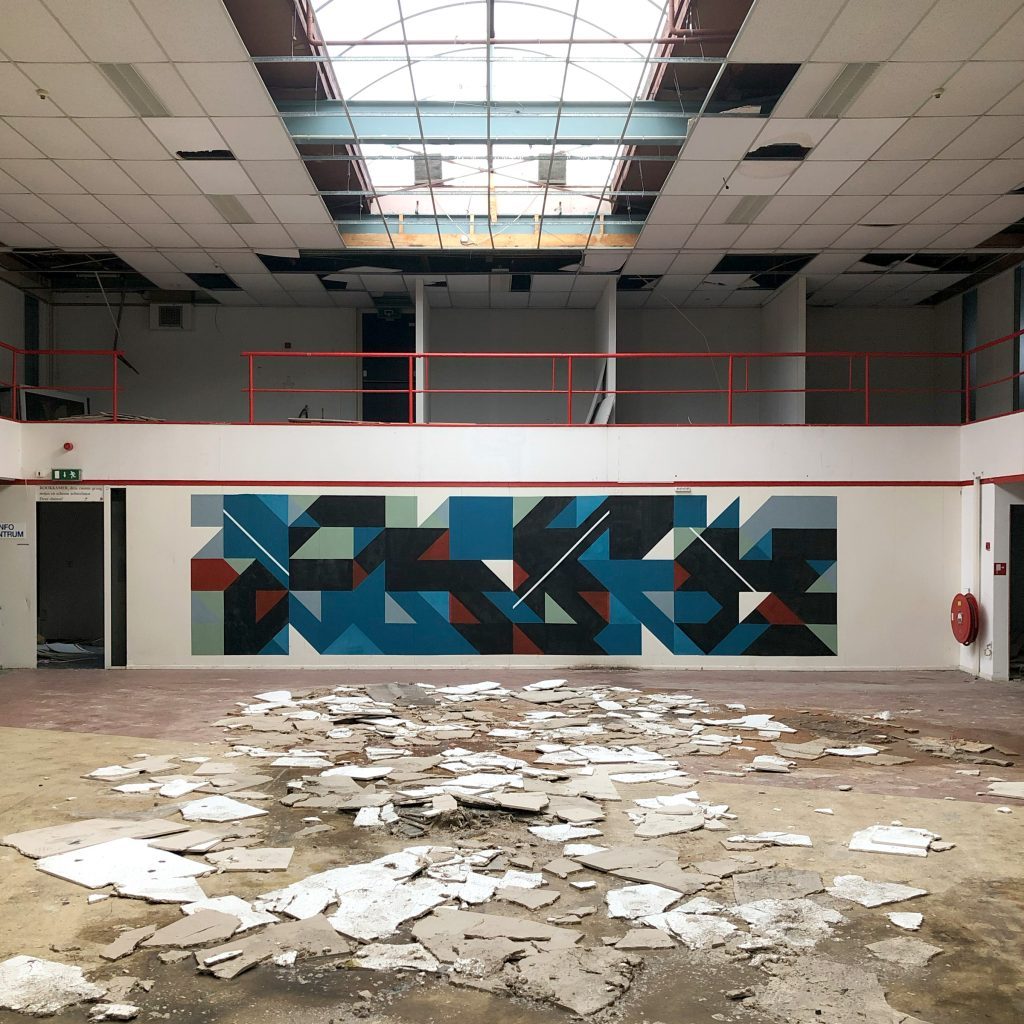 I work very mathematically and start with a grid. I try to start with a certain shape which I then repeat a couple of times within the design/composition I’m making. Just by changing some small parts, it doesn’t become a repetitive pattern, but it still feels alike. Next to that, the placement and the surroundings also make the composition satisfying. For me not only the design makes the composition. I often paint in urban locations, and then I try to match the composition with the place/wall that I find there. But most of the time you don’t know what the surroundings give you. You just bring certain colours along, but you don’t know if it will blend in or match with the surroundings or just with a small detail in the surroundings. For me, it is satisfying if all comes together like a puzzle. The design can be placed really well in the surroundings, the colours match with the environment and the natural light that is at the location. The complete image altogether, makes it satisfying to me.