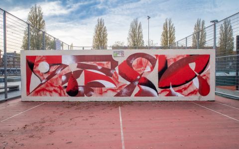 I sketch during the week or the night before. At the wall, I use the sketches as inspiration rather than reproducing them, translating them from memory into something that fits the wall and its surroundings. I look at windows, buildings, and background elements and try to echo them so the wall and environment have a conversation, and so do I with the wall.