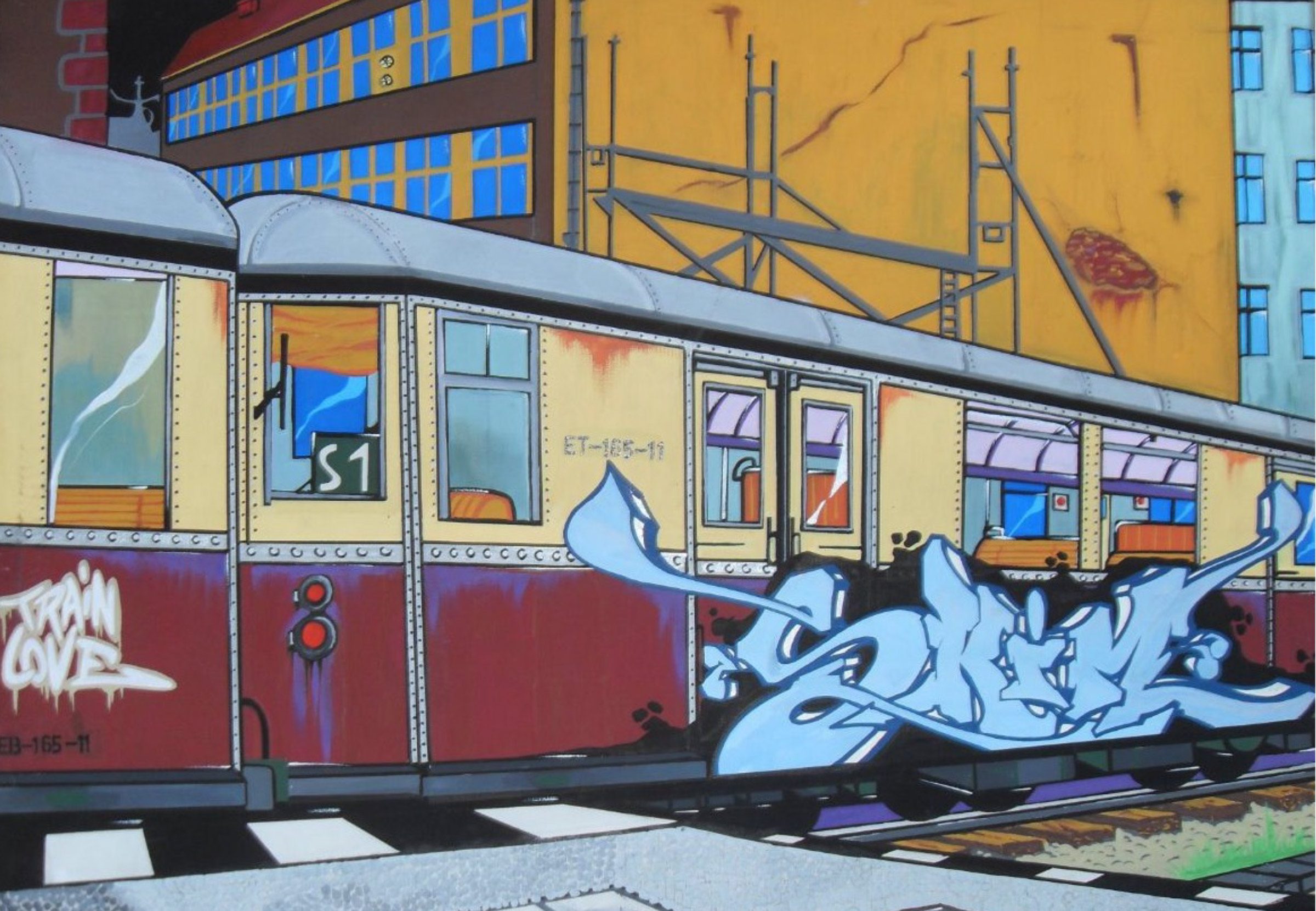 SKIM aims to bring letters to life, whether as a painter or as a rapper. As a third-generation graffiti artist, SKIM became known in the mid-1990s for his passionate style. As a rapper with the group Beatfabrik, he also achieved major musical success in the late 1990s, with over 400 performances in Germany, Austria, and Switzerland. During this time and after the group’s breakup, he remained true to his passion—painting.