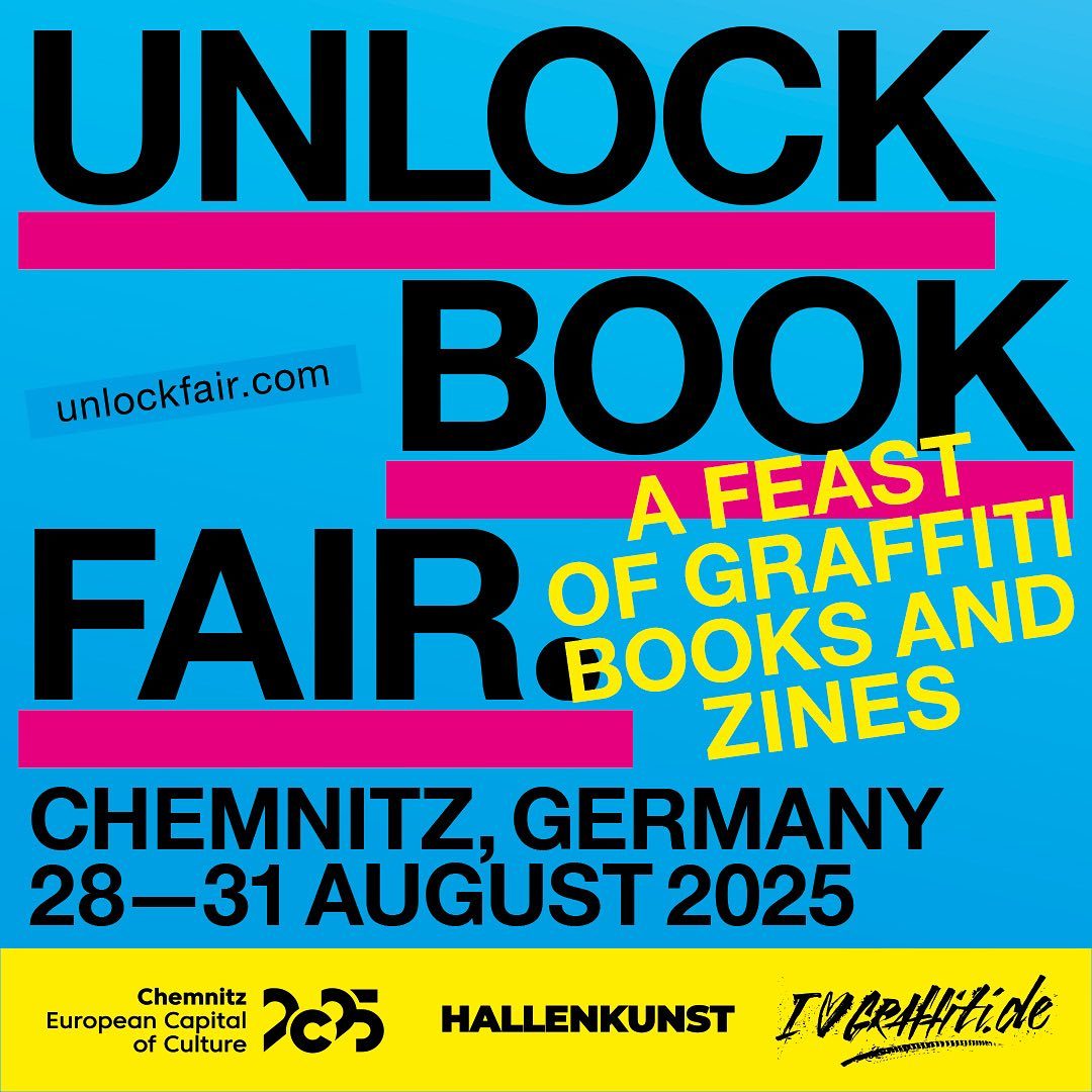 Diesen Sommer bringt die Unlock Book Fair wieder das Beste der internationalen Graffiti-Publishing-Szene zusammen. Verpasse nicht unsere vier lebhaften Tage voller Bücher, Filme, Vorträge, Ausstellungen, Touren und vielem mehr!
